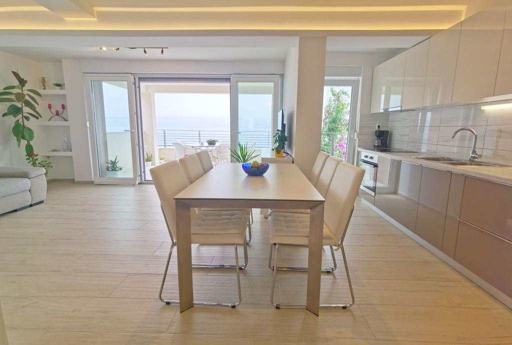 Het appartement is zeer modern ingericht. Prachtig uitzicht vanuit elk raam en terras. De koelkast verwelkomde ons vettig en vol haar, de borst ook vol haar en gras. Kussens in de woonkamer ingevet. Het hele appartement zat vol met andermans haar. Sommige gerechten waren besmeurd en het appartement zelf is niet voldoende uitgerust met de nodige gerechten. De airconditioning wordt apart betaald, de tv werkt niet, de vaatwasser heeft geen wastabletten. De parkeerplaats was onvoldoende voor het aantal auto's en we moesten vaak vanaf de derde verdieping naar beneden om de auto's te verplaatsen en een nieuw parkeerschema te maken. Er is geen bakker in de buurt en de dichtstbijzijnde winkel ligt op slechts 650 meter afstand, hoewel de advertentie 200 meter zegt. Een erg leuke plek om te ontspannen met het gezin.