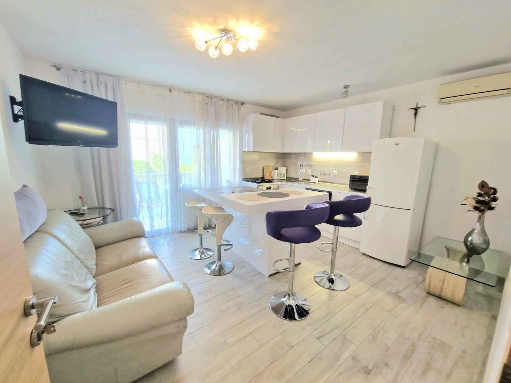 Appartementen DIZMA zijn gelegen nabij de stad Omiš en Dugi Rat aan de Omiš Riviera, 20 km van Split, de hoofdstad van Dalmatië. Deze prachtige plek ligt aan een 6 km lang aaneengesloten zandstrand, omgeven door groen bedekt met dennenbos een prachtig uitzicht op de zee en de eilanden Brač en Hvar, evenals het milde klimaat dat de plaats buitengewoon mooi maakt. aan de zandkust zijn er restaurants en koffiebars voor ontspanning en 's avonds voor muziek en romantiek. Talrijke mogelijkheden voor vrije tijd en ontspanning, evenals sportieve activiteiten zijn beschikbaar in het toeristische stadje Omiš, een kleine plaats onder de berg Mosor aan de bergrivier Cetina, die bekend staat om zijn 15 km lange raften op de rivier, zoals wandelen, fietsen, klimmen en watersporten.