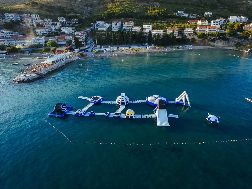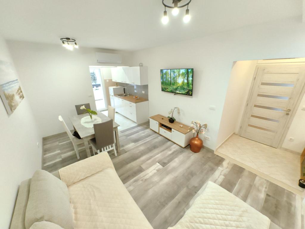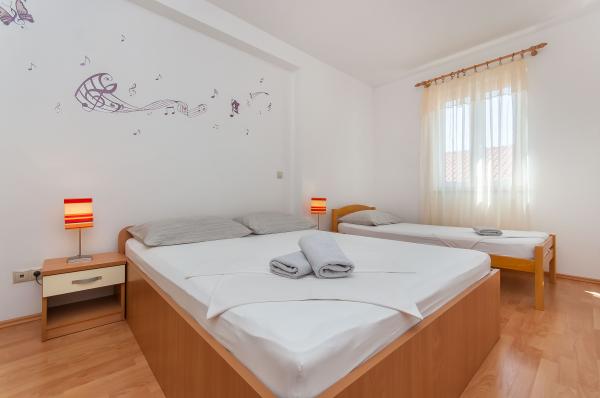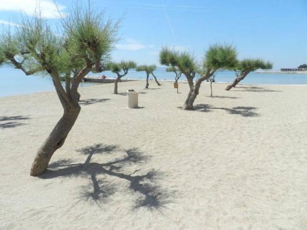 Inlusief wel Toeristenbelasting.Op het zandstrand bieden wij u de natuurlijke schaduw van Tamaris. In de buurt heb je de mogelijkheid om een boot te huren, jetskiën, paragliden en in het stadscentrum werken we samen met bureaus die activiteiten organiseren zoals raften, canyoning, zip-line, duiken, vrij klimmen, paintball, boottochten naar de natuur park Radmanova Mlinica. Er is een pizzeria en een café op het strand, en excursies naar de nabijgelegen eilanden worden door de gastheer zelf verzorgd met een privéboot die niet bij de prijs is inbegrepen.