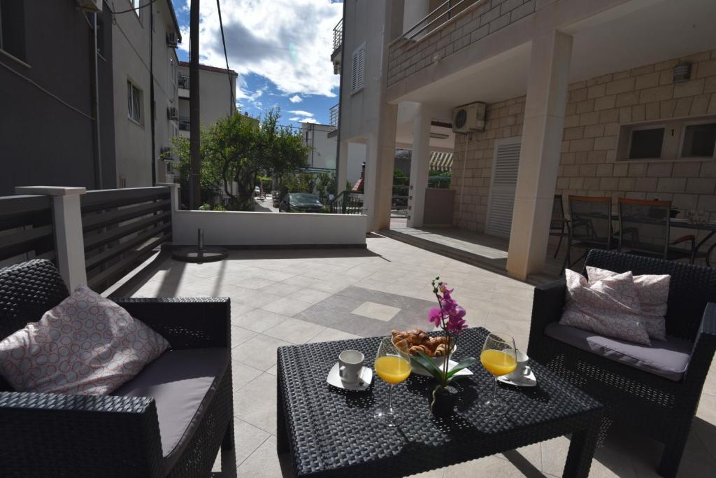 Appartementen Joško zijn gelegen in een van de mooiste kustplaatsen aan de Adriatische kust, in Duce, gelegen tussen de twee parels van Midden-Dalmatië, Split en de stad Omis. In Duce kunt u een zorgeloze en aangename vakantie doorbrengen. Duće ligt in de gemeente Dugi Rat en op slechts 1,5 km van het naburige Omis. De familie Vojnović, uw gastheren, zullen voor al het andere zorgen, zodat u volledig kunt genieten van zomerse genoegens op een van de mooiste plekken aan de Dalmatische kust ... Appartementen JOŠKO bieden accommodatie in ruime en volledig ingerichte appartementen met balkon en zee keer bekeken. Tot uw beschikking is een parkeerplaats, barbecue op een privéterrein aan zee, dat ons eigendom is.