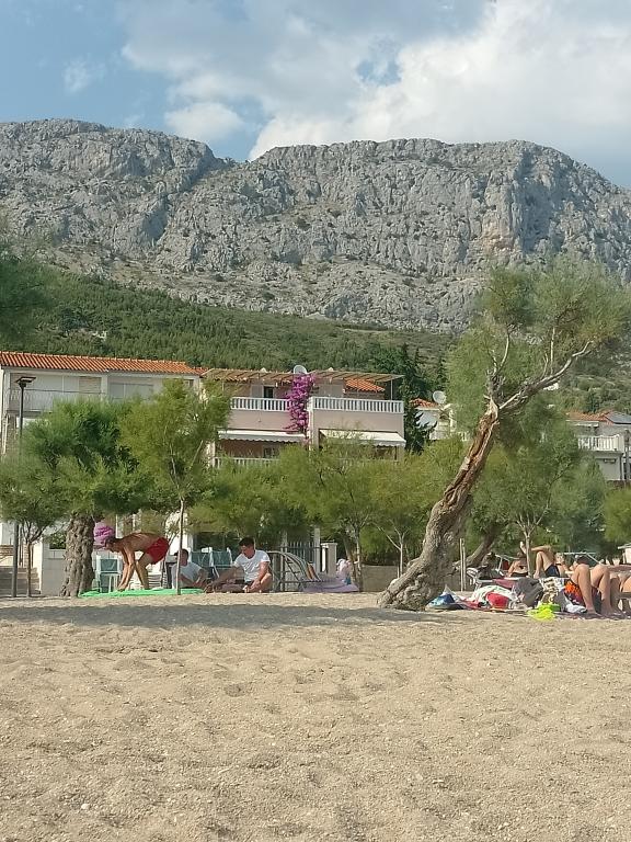 Fantastisch! Schoon, veel ruimte stap naar het zandstrand met bomen. Het uitzicht is geweldig Extra grote koelkast in de hal voor 2 appartementen. Gratis airconditioning. Geen klimaatkosten. Naar het centrum van Omis, brug, 20 minuten lopen. Rustige buurt maar er zijn panden dus je kunt ook iets gaan drinken of eten. Ik raad ten zeerste aan