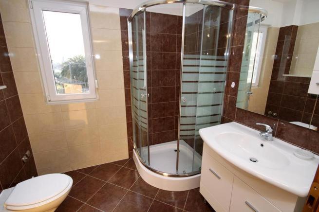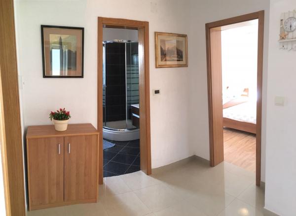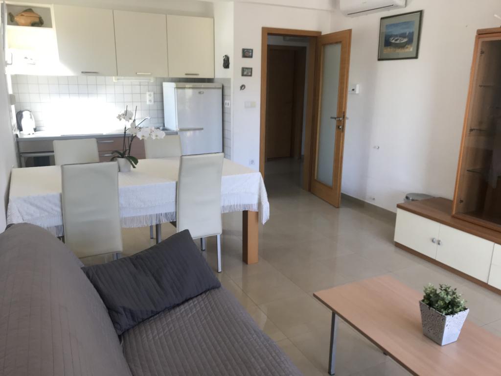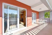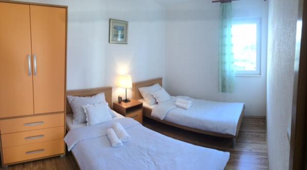 Het huis heeft twee appartementen van 75 vierkante meter. Elk appartement heeft twee slaapkamers, een kamer heeft twee bedden en de andere drie bedden. In de ruime woonkeuken met woonkamer is er de mogelijkheid voor twee personen op de bank. Op de gang is er een badkamer met toilet en toilet. Beide appartementen hebben een ruim balkon met uitzicht op zee. Er zijn autogarages op de begane grond. Het is noodzakelijk om de weg over te steken om het strand te bereiken dat op 150 meter afstand van het huis ligt. Op korte afstand is er keuze tussen verschillende soorten stranden en de diepte van de zee. Geschikt voor kinderen. Op het strand kun je, naast zwemmen en zonnen, kiezen uit allerlei extra vormen van vermaak. De afstand tot de broodkiosk is 50 meter, winkels 200 meter, en in de nabije omgeving zijn er verschillende soorten restaurants.