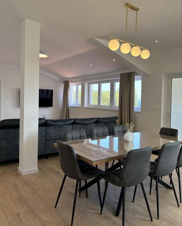 Appartementen Nikola Skarica zijn in plaats Duce in Omis. Het gebouw heeft in totaal 9 appartementen met balkons. Het strand ligt op 100 meter van het appartement aan het strand is er een onderdoorgang om niet naar de weg over te steken. De appartementen hebben een grote tuin met een grote tuin voor de gasten die de grill met outdoor keuken te gebruiken ,. Parkeren is pesplatan en vastgezet voor elk appartement. . Voor amusement is beschikbaar tafeltennis, ping-pong en voor de kinderen hebben we schommels.