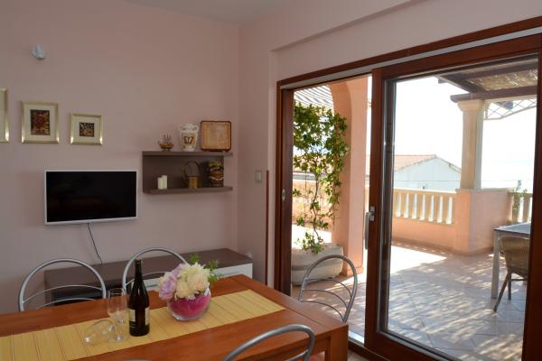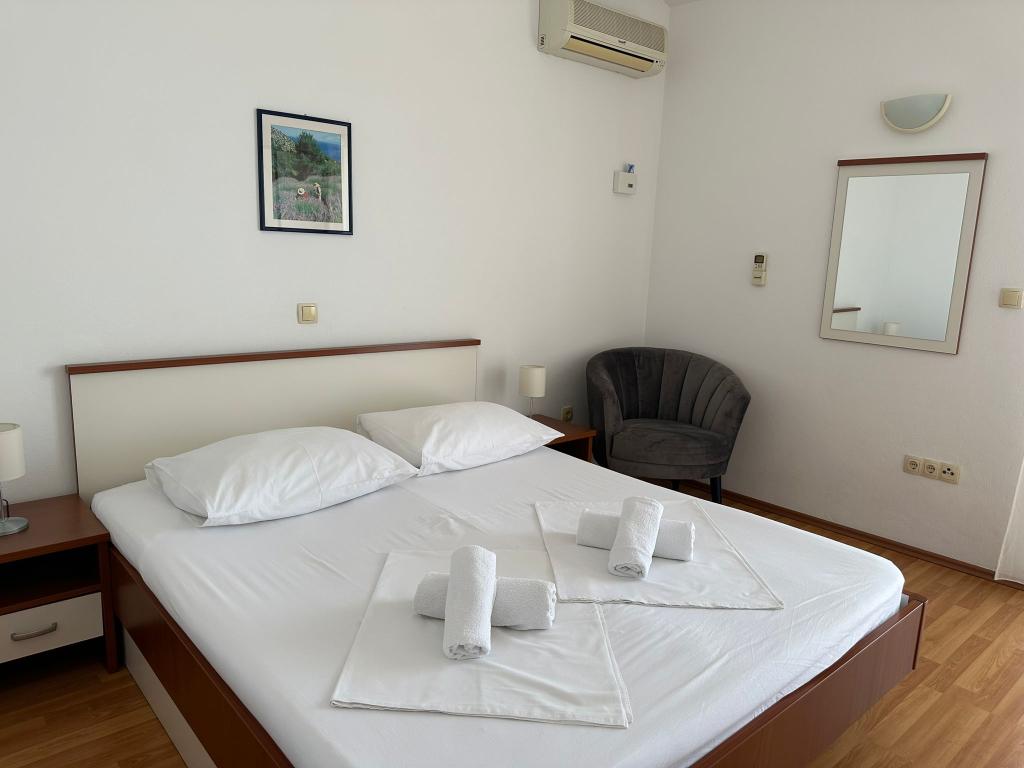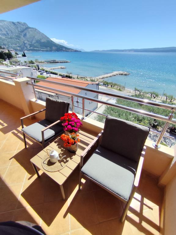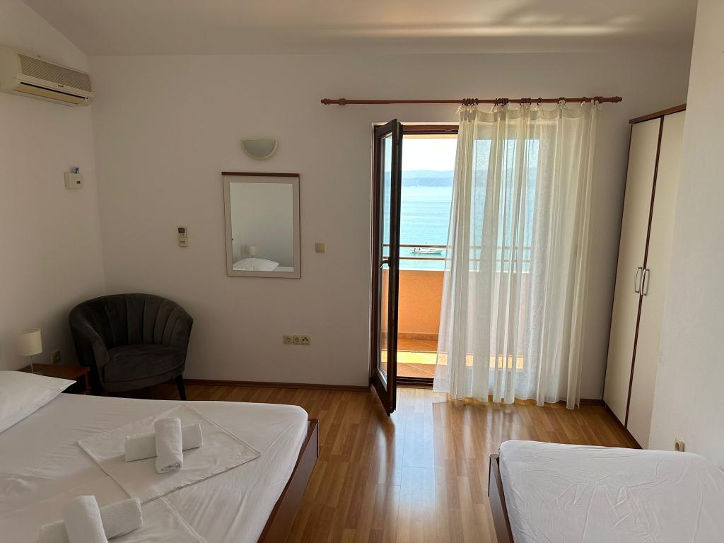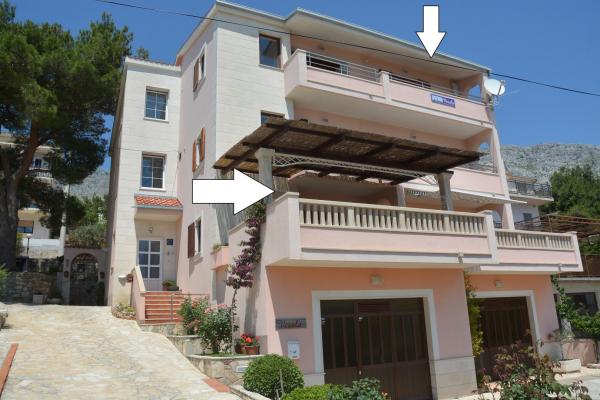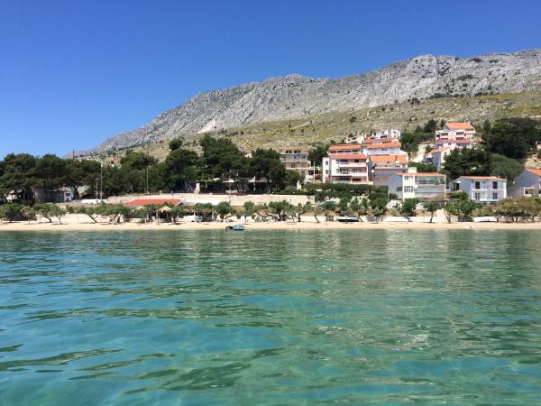 Wij bieden twee ruime en goed uitgeruste appartementen met uitzicht op zee, op 50 m van het zandstrand. De appartementen zijn ontworpen voor 8 personen - ze zijn ideaal voor een groep vrienden of families met kinderen. Accommodatie biedt gratis parkeergelegenheid, WI-fi, tuin, barbecue. Appartement A1 bestaat uit vier tweepersoonskamers, elk met een eigen badkamer, een groot terras en een keuken. In de keuken is er een magnetron, vaatwasser, koelkast, kookplaat. Appartement A2 bestaat uit drie kamers; een kamer bestaat uit twee tweepersoonsbedden voor vier personen, de andere is een tweepersoonskamer en de derde bestaat uit een tweepersoonsbed en een eenpersoonsbed. Elke kamer heeft een badkamer. Het appartement heeft een grote keuken en een terras met uitzicht op de zee. Elk appartement heeft een tv in de zithoek. De accommodatie ligt op 2 km van de stad Omis en op slechts 50 m van het dichtstbijzijnde restaurant. Het busstation ligt direct naast het huis, dat goede vervoersverbindingen biedt met Split, dat op 20 km afstand ligt.