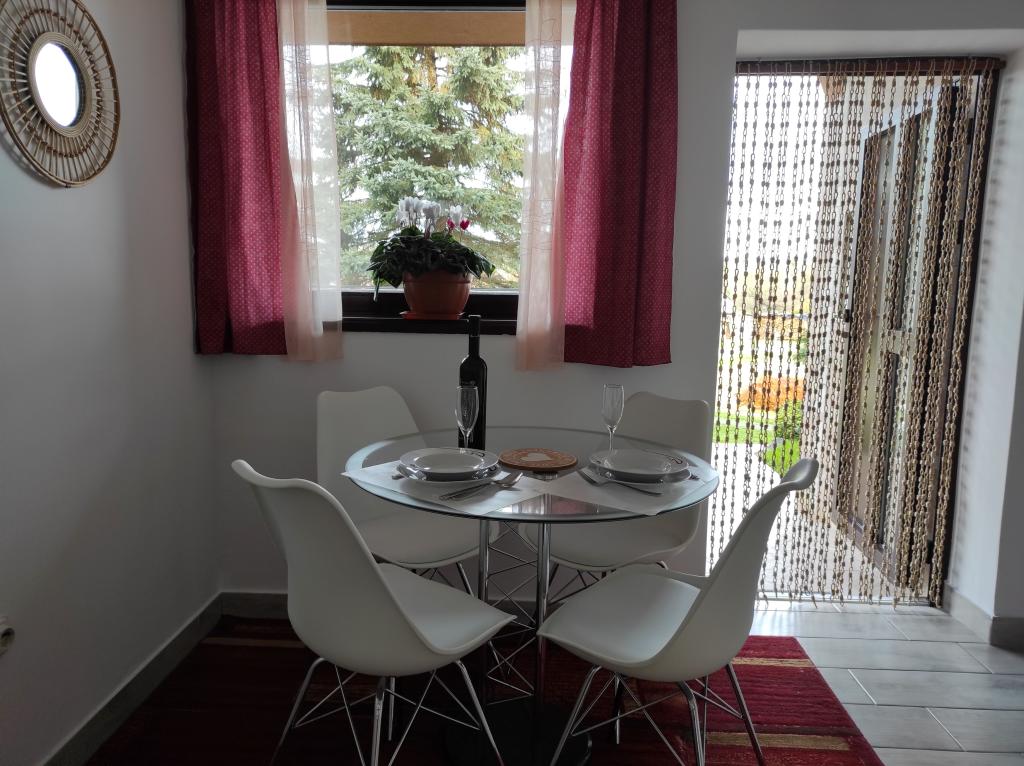 Het appartement bevindt zich in een gezinswoning, op de begane grond met een aparte ingang. Het wordt omgeven door groen en ligt op ongeveer 100 meter afstand van de rivier de Mrežnica. Indien u met de auto komt, is er een parkeerplaats voorzien op het erf. De binnenruimte bedraagt 35 m2 en het buitenterras 15 m2. Ideaal voor koppels en kleine gezinnen (maximaal 3 personen). U kunt ook één huisdier meenemen tegen een toeslag van € 10,-. Het appartement is volledig gemeubileerd, gerenoveerd (2023) en voorzien van airconditioning (koeling/verwarming). Door de ligging op de begane grond en aan de noordzijde is het er in de zomer zowel overdag als 's nachts aangenaam fris. Roken is alleen toegestaan in de buitenruimte. Het organiseren van feesten e.d. is niet toegestaan. De prijs voor één nacht bedraagt € 10 meer dan de prijzen vermeld in de prijslijst.