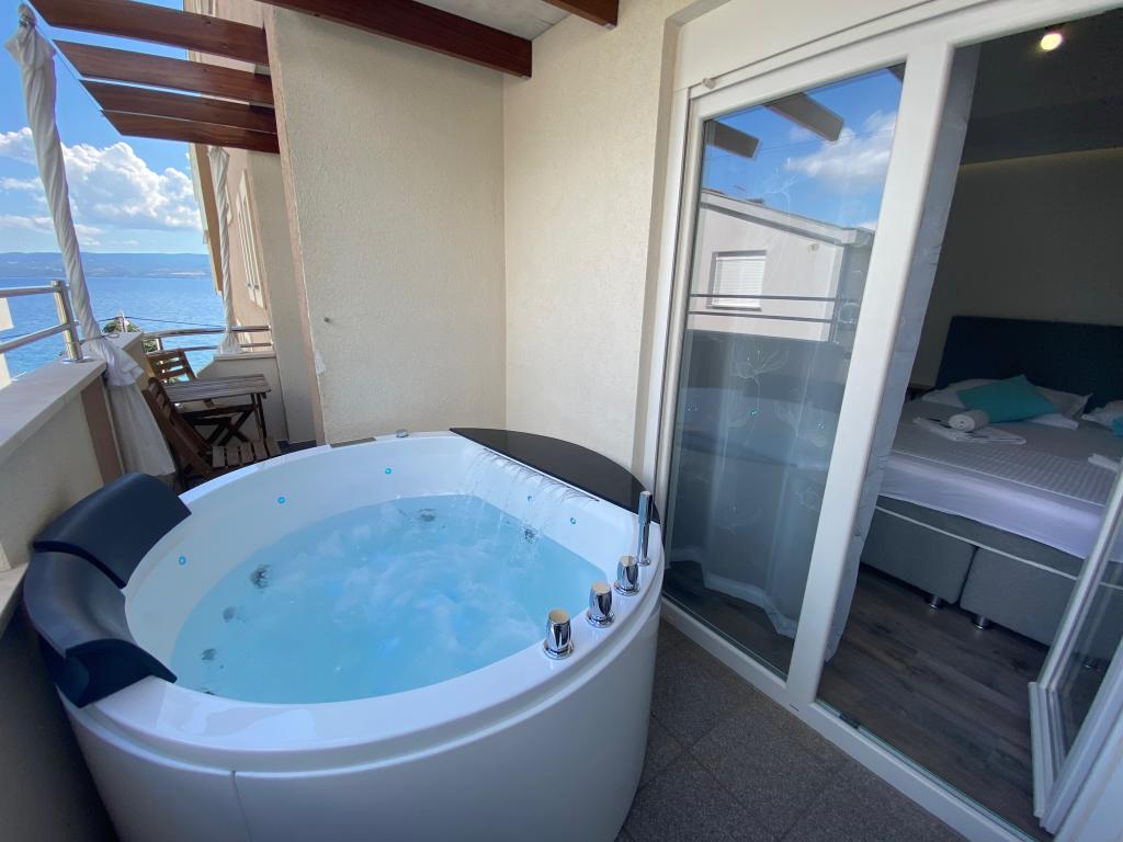 Luxe ingerichte appartementen in een rustige wijk, met een eigen hydromassagebad (jacuzzi), gelegen op de eerste rij aan zee. Er is een kiezelstrand voor het huis en een strandcafé in de buurt. Er is gratis parkeergelegenheid op het terrein.
