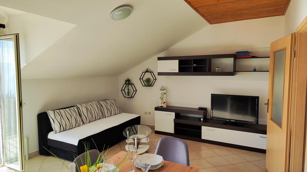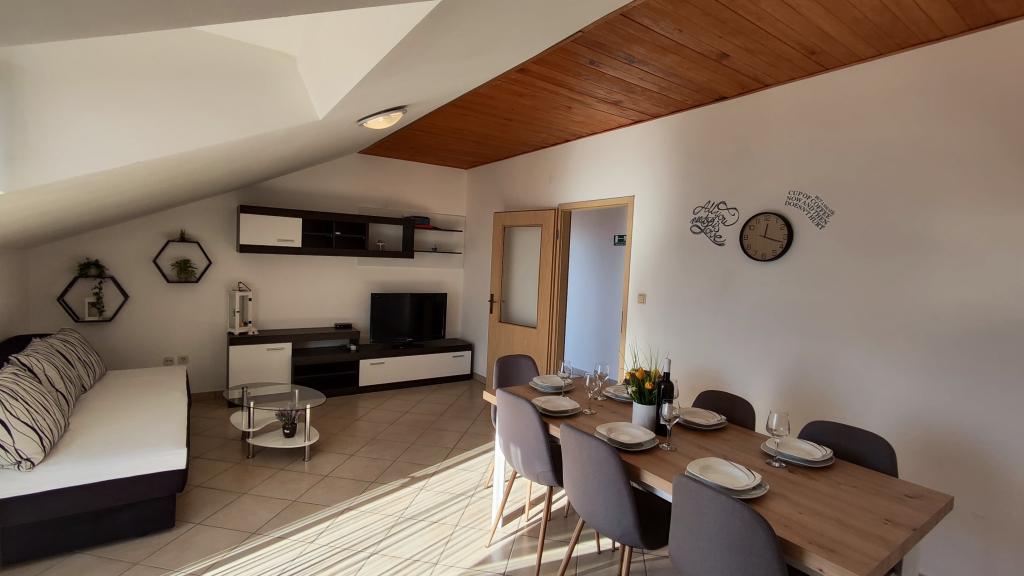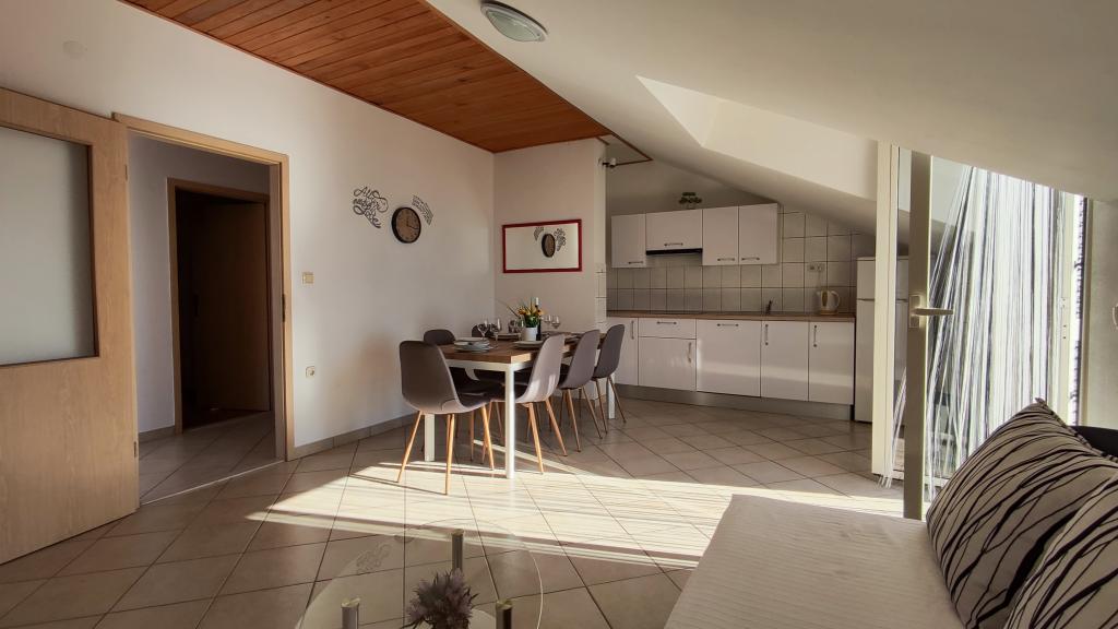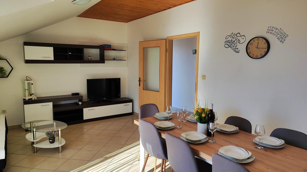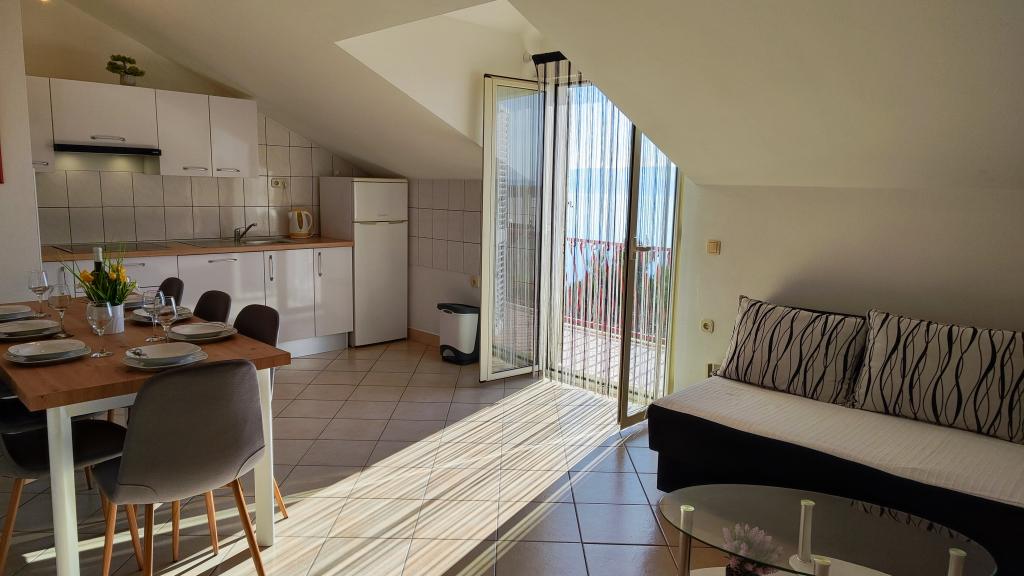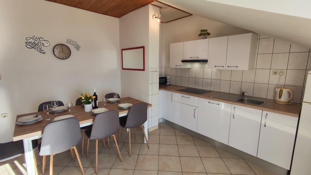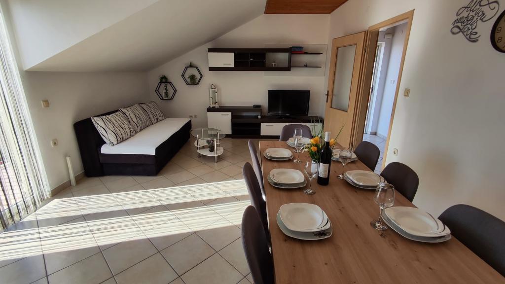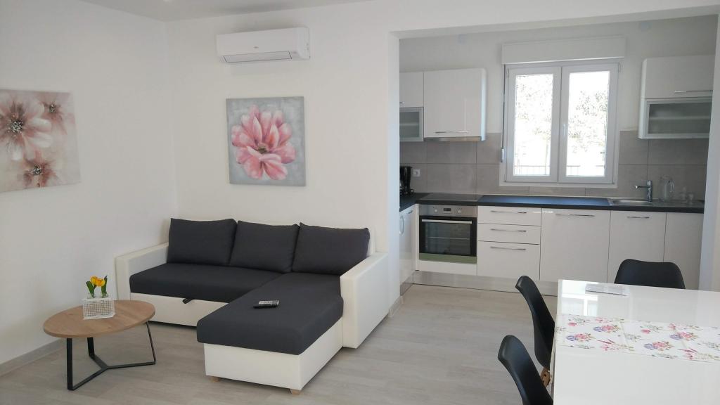 Appartement zeer goed voor een gezin met een kind, zeer schoon, de lakens en handdoeken vervangen door schone na 7 dagen. Zeer goed uitgeruste keuken, groot terras. De gastheren erg aardige mensen. Kinderen spreken Engels gastheren. No air-conditioning kan storend zijn tijdens een zeer warme nacht, want de warme dagen en dus besteedt de zee. Het dichtstbijzijnde strand is rotsachtig, maar goed, gemakkelijke toegang tot de promenade aan zee strand grind - zeer goed voor kinderen. Stad rustig, dat is niet overvol stranden. Een goed uitgangspunt voor een bezoek aan Split, Trogir, Omis en Makarska Riviera - overal dicht.