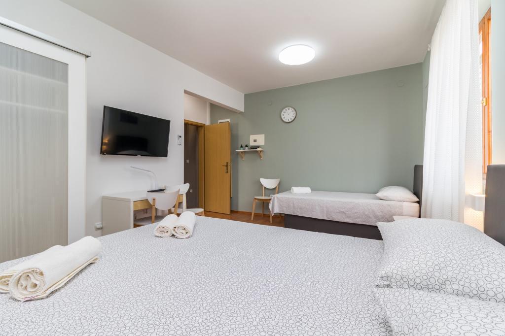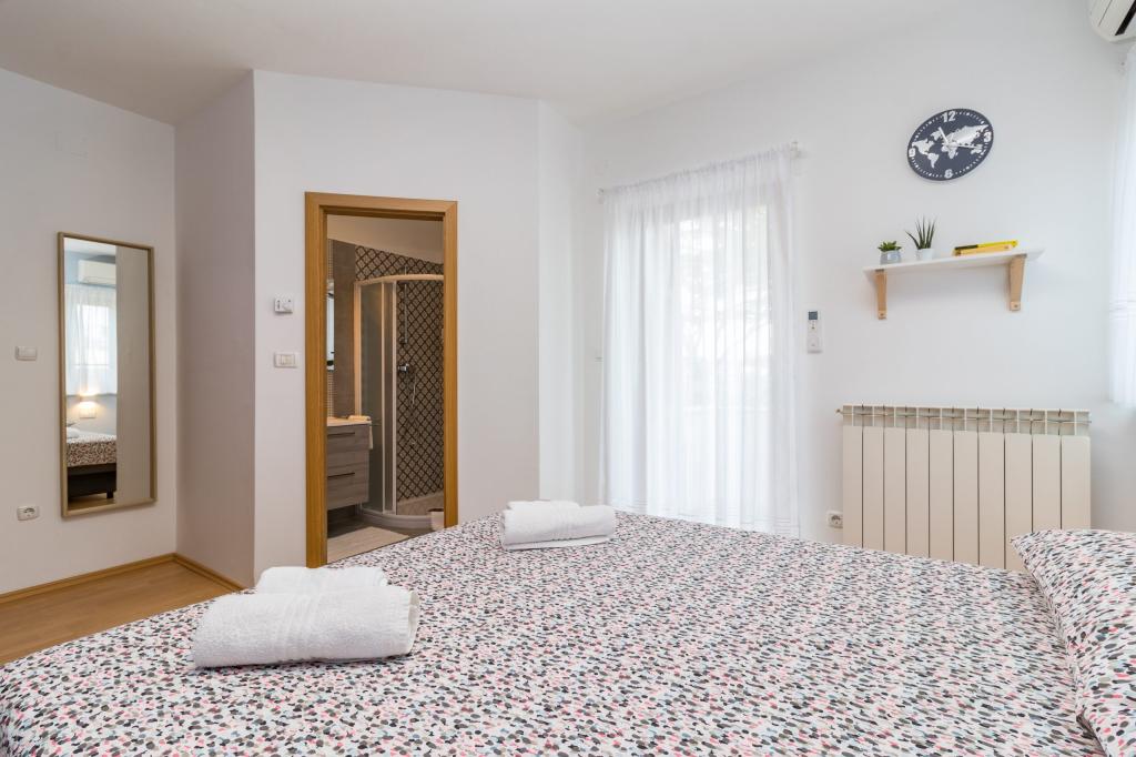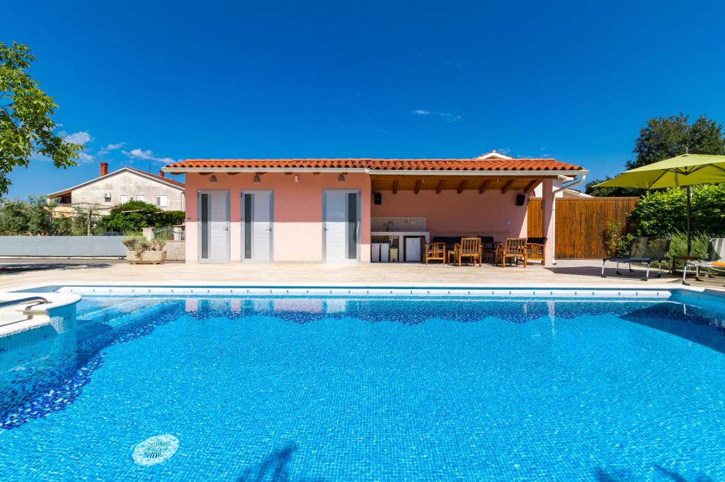 Volledig uitgerust appartement voor 8 personen, met drie slaapkamers en en-suite badkamers, op slechts 800 meter van het strand. Een privézwembad met zout water, een kinderspeeltuin en een barbecue maken uw vakantie onvergetelijk. Elke slaapkamer heeft een eigen satelliet-tv, airconditioning en verwarming, de keuken is volledig uitgerust en parkeergelegenheid en gratis WiFi zijn ook beschikbaar. Het appartement is gelegen tussen het kleine vissersdorpje Fažana en het oude Pula, dicht bij het Brijuni Nationaal Park.