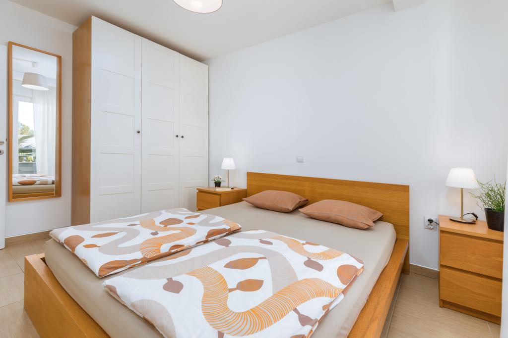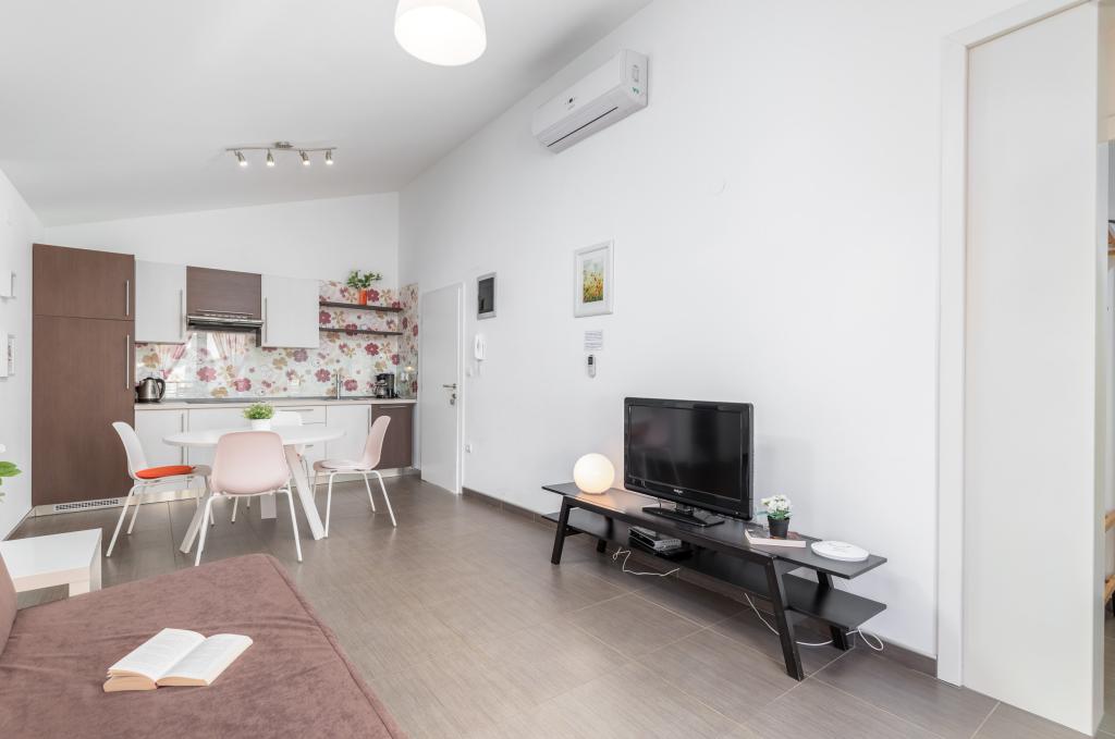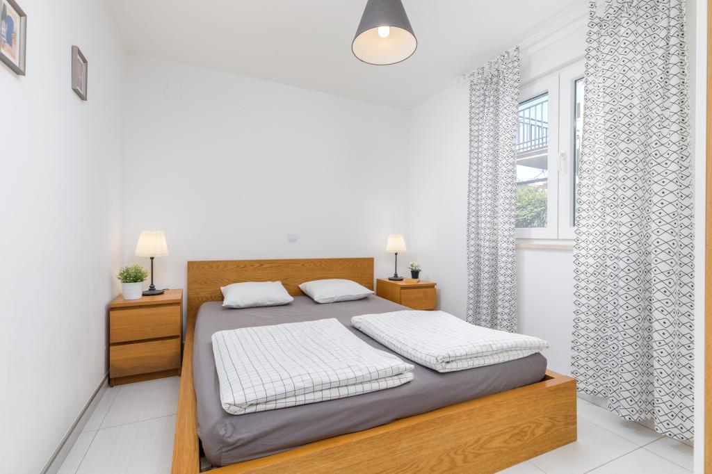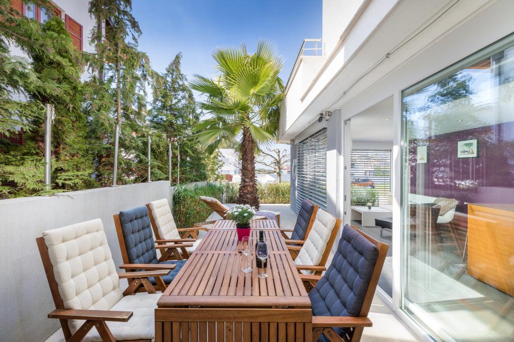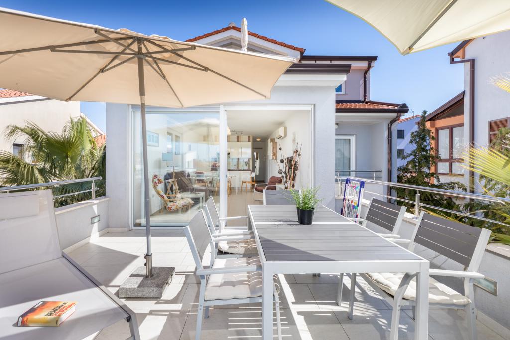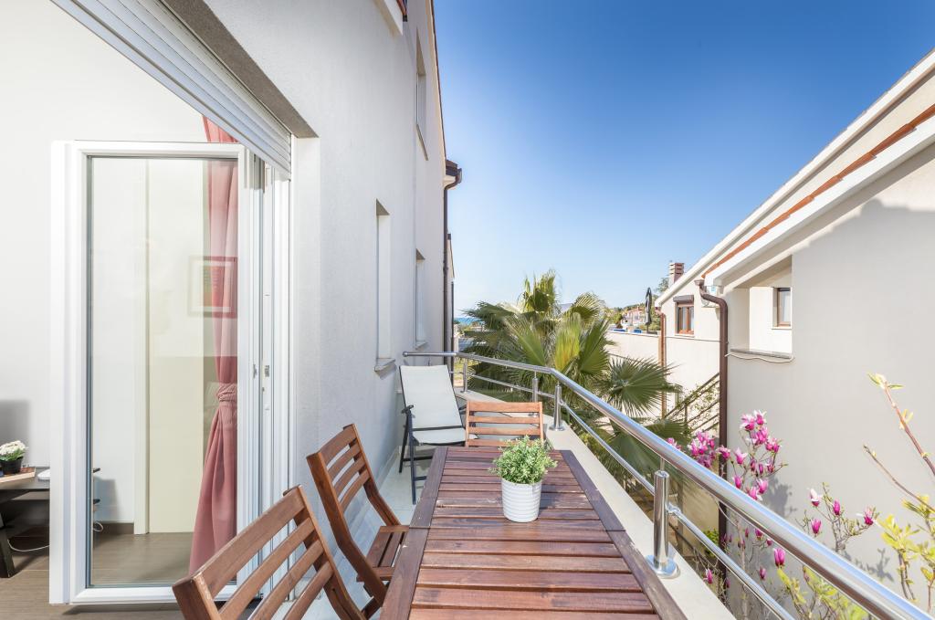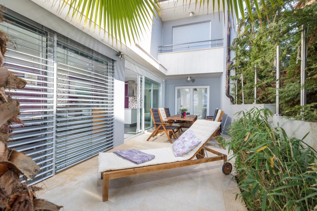 Modern huis met 5 appartementen, met uitzicht op de zee, 200 m van het strand. Elk appartement heeft een parkeerplaats voor het huis. Nabij het gebouw is er een compleet programma dat nodig is voor een aangename vakantie. (winkelen, strand, dokter, restaurants, bar, oude stad, etc.) Dit alles is binnen een paar minuten lopen.