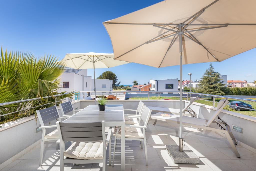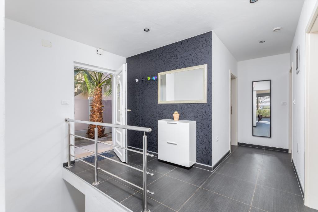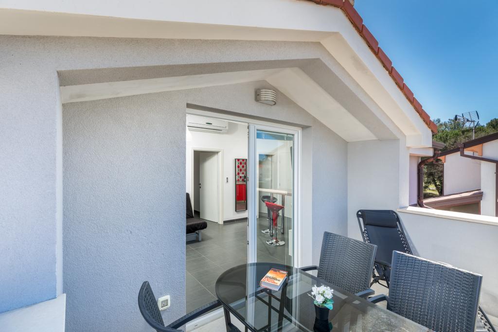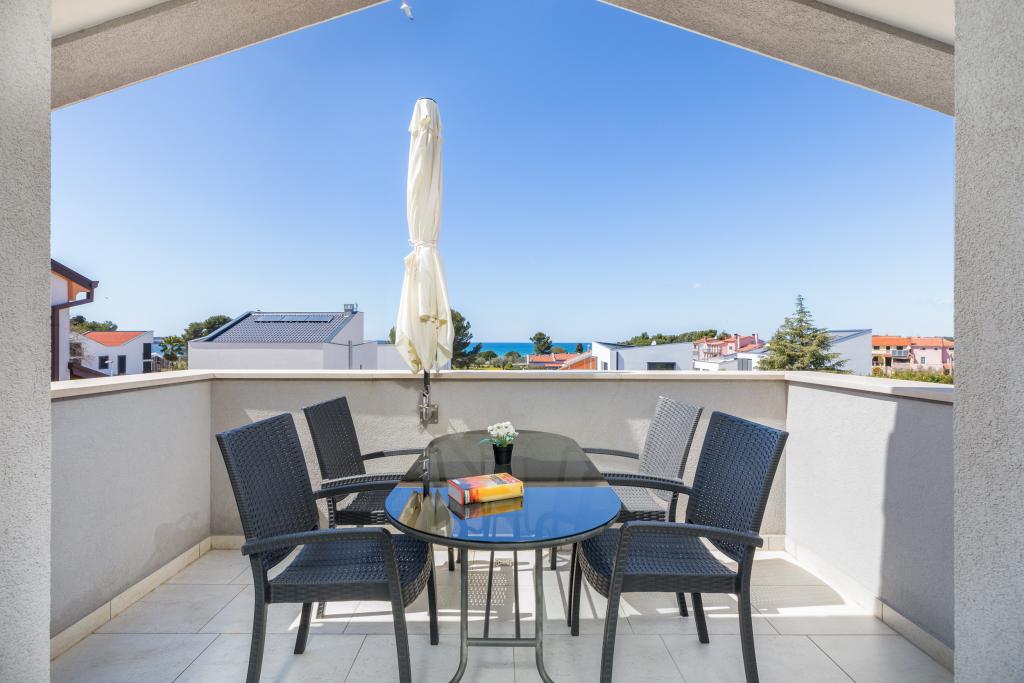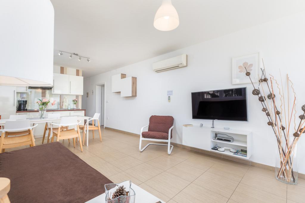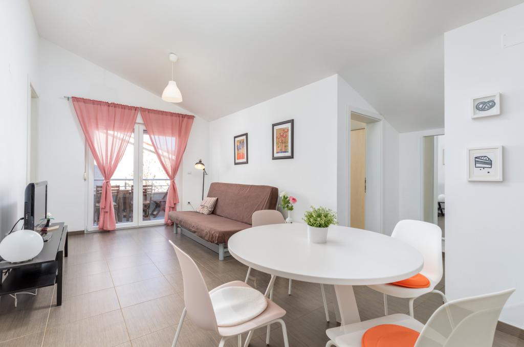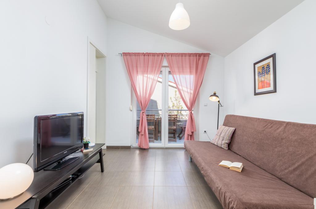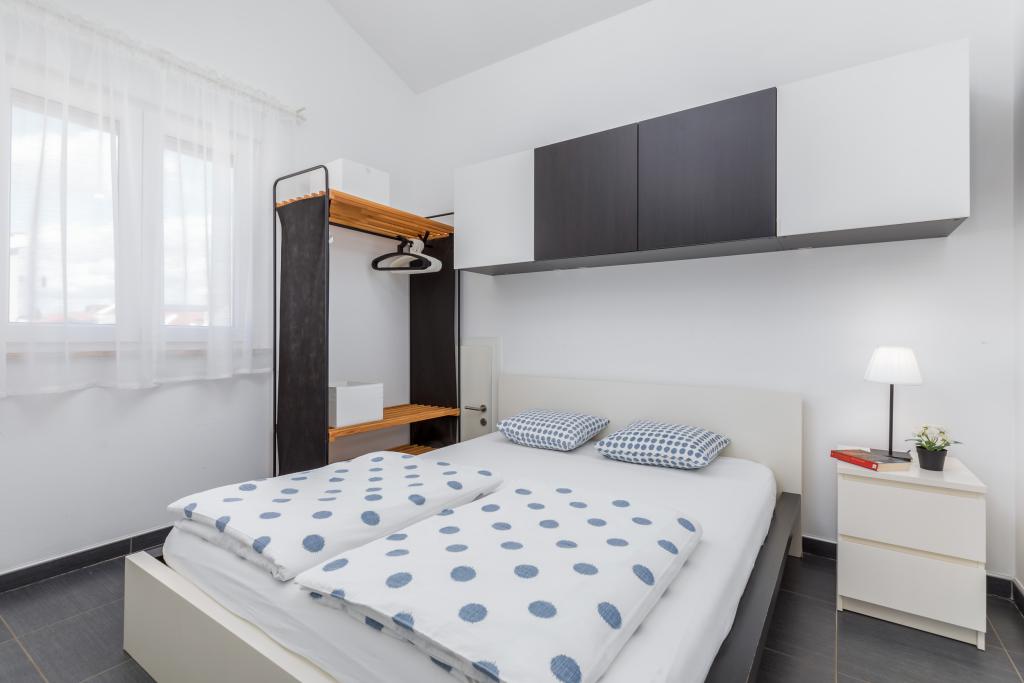 Modern huis met 5 appartementen, met uitzicht op de zee, 200 m van het strand. Elk appartement heeft een parkeerplaats voor het huis. Nabij het gebouw is er een compleet programma dat nodig is voor een aangename vakantie. (winkelen, strand, dokter, restaurants, bar, oude stad, etc.) Dit alles is binnen een paar minuten lopen.