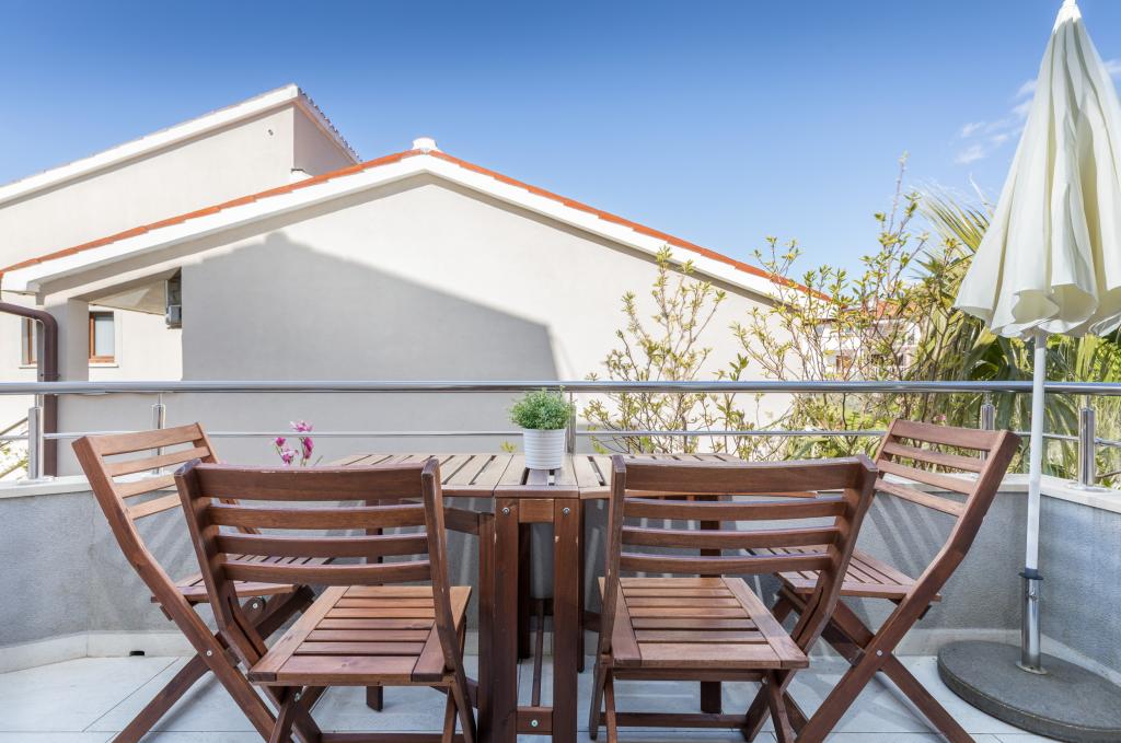 We zijn al lang niet meer in zo'n mooi, goed uitgerust, stijlvol appartement geweest. Bij elke beurt is te zien dat de eigenaar aan alle kleine dingen heeft gedacht die iedereen nodig heeft om van dit appartement te genieten. Twee airco's, alle kamers hebben rolluiken, grote kasten en veel opbergruimte. Ze hebben zelfs een brandblusser. De badkamer heeft een kwaliteitsdouche en heeft een extra kachel. Er waren ook kwaliteitshanddoeken. Keuken, uniek. Een grote set kwaliteitsbakken en een grote set borden. Potten voor elke gelegenheid en een grote set bestek. Bevat een vaatwasser met vaatwastabletten. Kortom, de keuken is net zo uitgerust als thuis. Op het terras staan alle stoelen, tafel, ligstoelen en parasols in dezelfde stijl. Het appartement is zo mooi alsof het is ontworpen door een professionele interieurarchitect. De omgeving van het appartement is ook erg mooi. Elk appartement heeft een intercom. Van harte aanbevolen aan iedereen die graag in een mooi en schoon appartement woont of slaapt.