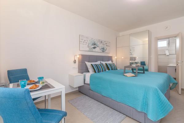 Inlusief wel Toeristenbelasting.The kitchen is fully equipped with all accessories, dishwasher, 2-pane glass ceramic plate, freezer and fridge. Each apartment has a table and chairs for dining inside and on the terrace. We are very proud to offer beds of very large dimensions of 190x210 with extra quality mattresses and quality bedding, USB charging sockets are next to the bed. Lights have ability to change color and have bluetooth speaker for listening music from mobile phone. Great WI-FI and big screen Android TV with variety of programs from Internet or satelite TV and free Netflix service. Each apartment has a make-up table and chair, but it can be used as a work desk. The bathrooms are equipped with floor mats, towels, toilet paper, hair dryer and First aid box.