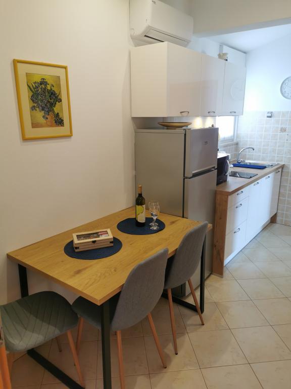 We verbleven in appartement nummer 1. Het ligt niet ver van het strand en het centrum van Fažana. De accommodatie is gloednieuw, er zijn: twee slaapkamers, een wasmachine in de badkamer, airconditioning, inductiekookplaten die zeer gemakkelijk en praktisch in gebruik zijn, een grote tafel buiten op het terras, een eigen parkeerplaats goed overdekt door de pergola. Mevrouw Irena liet drankjes voor ons achter in de koelkast en al het beddengoed en handdoeken. Irena was erg aardig en gastvrij, gaf ons advies en stond voor alles klaar. Ik raad deze accommodaties ten zeerste aan!