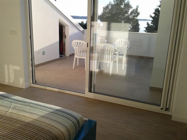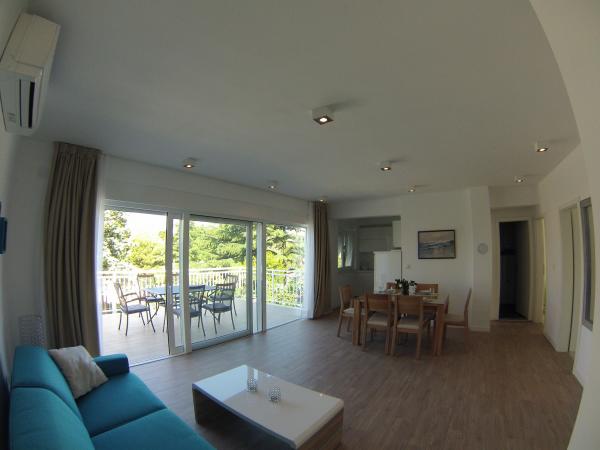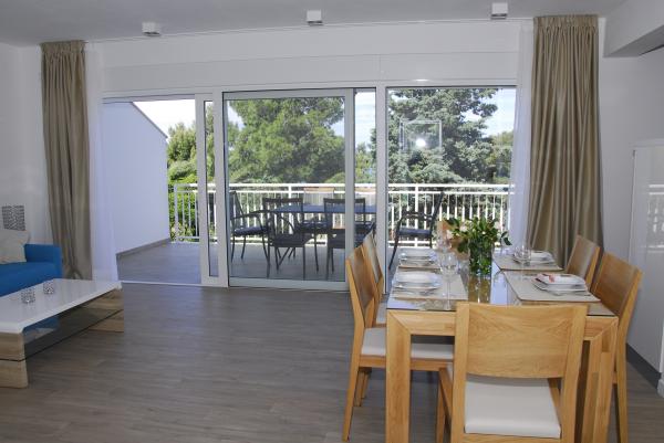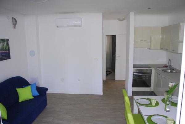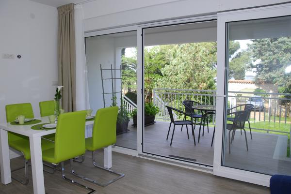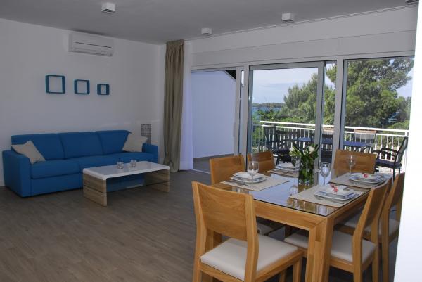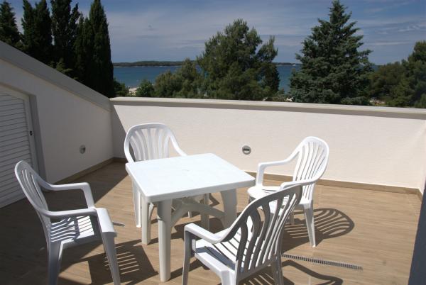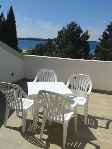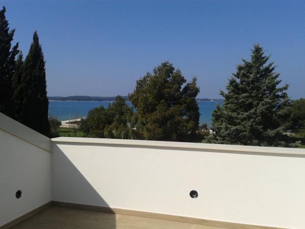 3 volledig nieuw gebouwde en moderne appartementen bevinden zich in de eerste rij naar de zee, gelegen in een rustige omgeving van Fažana, in het groen, met een idyllisch uitzicht over de zee en de Brijuni-eilanden. Ze bevinden zich op slechts 50 meter van het strand. Aan de voorzijde is een loopbrug, en gazon en dan het strand. Parkeren is in de voorkant van het huis. De auto wordt alleen gebruikt voor reizen, omdat het in de directe omgeving. De appartementen zijn bijzonder geschikt voor gezinnen met kinderen, omdat het in de buurt van de speeltuin (60m) en vanwege de afstand van uitvalswegen. In de directe omgeving zijn er sportfaciliteiten; beach volleybal, zeilen, windsurfen, fietspaden ... Alle drie suites hebben grote terrassen (20 m2) met uitzicht op zee.