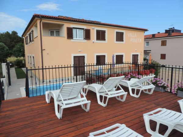 Villa Pineta, gelegen in Fažana, vlakbij het Nationaal Park Brijuni en vlakbij het Pineta-kamp, op slechts 650 meter van het strand, biedt een onvergetelijke vakantie in zijn 5 modern uitgeruste en comfortabele suites. De villa met zeezicht biedt ontspanning, plezier in de frisse zeelucht en de voordelen van een nabijgelegen dennenbos, recreatie en actieve vakantie. De appartementen zijn voorzien van airconditioning, gratis internet en satelliet-tv. Voor elk appartement zijn twee parkeerplaatsen voorzien. Parkeren is ook ingesloten onder bewaking van beveiligingscamera's.