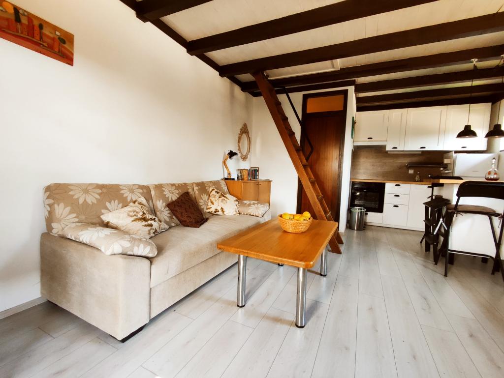 Een klein huis dat zelfs de meest veeleisende bezoekers volledig zal bevredigen. In het huis vind je alles wat je nodig hebt voor een zorgeloos verblijf en loop je in een paar minuten naar de rivier en de prachtige waterval (300m). Het huis is gelegen op een zeer rustige plek. Er zijn 2 winkels, een postkantoor en een café in het centrum van de stad. Het huis heeft uitzicht op de rivier en de waterval. Aangezien het een gebouw met twee verdiepingen betreft, is het mogelijk om een naastgelegen appartement (5 personen) te huren. Het appartement op de begane grond bestaat uit een keuken (koelkast met vriesvak, oven en 4 elektrische kookplaten, alle benodigde servies en keukengerei), woonkamer (slaapbank, TV, muzieklijn, bordspellen, boeken) en badkamer (toilet, bidet), douche en wastafel). Boven, op de zolder, staan een tweepersoonsbed (160x200) en twee eenpersoonsbedden (90x200) en een klein terras met uitzicht op de waterval. Er is een barbecue in de achtertuin. Het appartement is voor maximaal 5 personen + babybedje en het minimum verblijf is twee nachten. Het huis is gelegen op een zeer rustige plek. Er zijn twee winkels, een postkantoor en een café in het centrum van de stad.