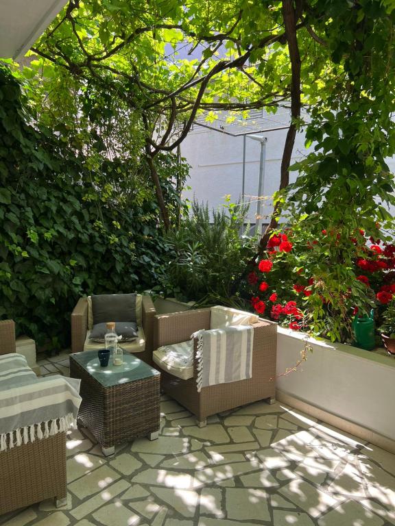 Appartement in een huis in het oude gedeelte van Graz. Op 2 minuten lopen van het strand, de zee en het centrum waar alle bars en restaurants, maar is verborgen van de drukte en voorbijgangers. De inrichting is gelegen in een verzonken deel van de oude stad naast de haven. Het is voorzien van airconditioning en beschikt over gratis wifi, is gelegen op de begane grond met een groot terras met uitzicht op de zee.