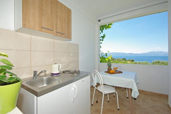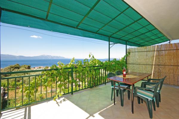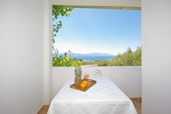 Het huis is gelegen op het platteland en olijfbomen, in een rustige omgeving op ongeveer 500 meter of 15 meter afstand van de zee. Het huis heeft een prachtig uitzicht op de zee en de berghelling.