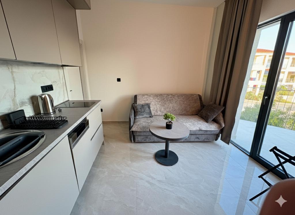 Geniet van de luxe van onze volledig gerenoveerde appartementen, ingericht volgens 4-sterrenstandaarden. Gelegen in een rustig deel van de stad, bieden ze een perfecte vakantie zonder lawaai en liggen ze op slechts een paar minuten lopen van de mooiste stranden, restaurants en cafés. Wat wij bieden: • Topvoorzieningen: Modern interieur, airconditioning, snel internet en tv met een ruime keuze aan zenders. • Hygiëne en elegantie: Een hoog niveau van hygiëne en een zorgvuldig gekozen design voor uw maximaal comfort. • Privé parkeerplaats: Een veilige parkeerplaats voor uw auto is beschikbaar op het terrein. • Gastvrijheid: Wij staan altijd tot uw beschikking om de beste restaurants, excursies en lokale bezienswaardigheden aan te bevelen. Let op: Roken en huisdieren zijn niet toegestaan in de accommodatie, zodat de frisheid en kwaliteit van de ruimte voor al onze gasten gewaarborgd blijven. Beleef de perfecte vakantie in elegantie en rust. Welkom!