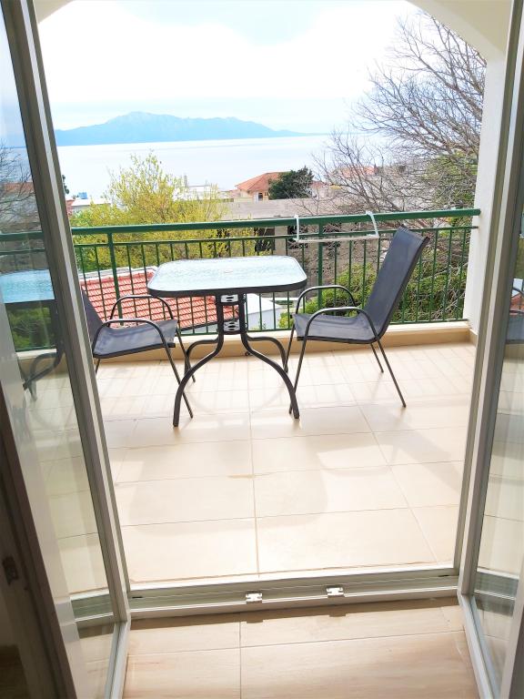 We verbleven in het Ariana-appartement op de tweede verdieping. Het is vrij ruim en uitgerust met alles wat je nodig hebt, zelfs een wasmachine. Beide kamers zijn voorzien van airconditioning, wat ons privacy gaf omdat we de kamerdeur niet open hoefden te houden. Het balkon heeft een prachtig uitzicht op de zee en de bergen, het is groot genoeg om erop te dineren, het kijkt uit op de rustige kant waar geen auto's langskomen. Parkeren is veilig op het erf van het huis. Wij komen graag nog een keer.