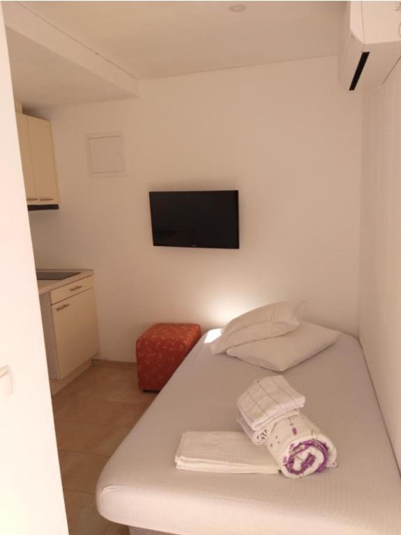 Appartementen Kolumbo Geniet van uw verblijf in Appartementen Kolumbo, ideaal gelegen op slechts een minuut lopen van het prachtige kiezelstrand, het centrale plein, pizzeria's en cafés. De accommodatie biedt drie appartementen. Alle appartementen zijn identiek ingericht en beschikken over: Airconditioning en gratis wifi. Satelliet-tv. Eigen badkamer. Uitgeruste keuken met kookplaat, magnetron, waterkoker en koelkast. Indeling van de appartementen: Begane grond: Twee appartementen met gemakkelijke toegang. Eerste verdieping: Appartement met terras en uitzicht op zee. Parkeergelegenheid is beschikbaar voor alle gasten. Exclusief voordeel in ons restaurant: Als onze gast krijgt u 10% korting op lunch en diner in ons familierestaurant Marina Restaurant. Geniet van verse lokale specialiteiten tegen een voordeligere prijs.