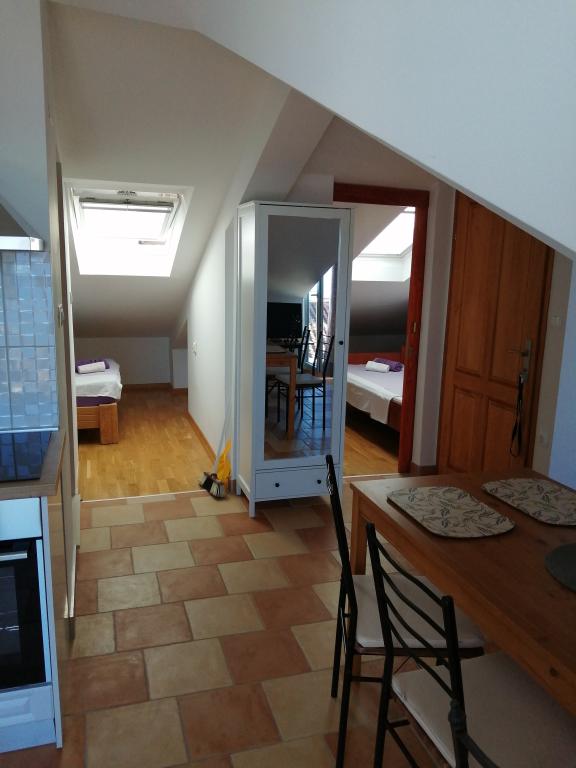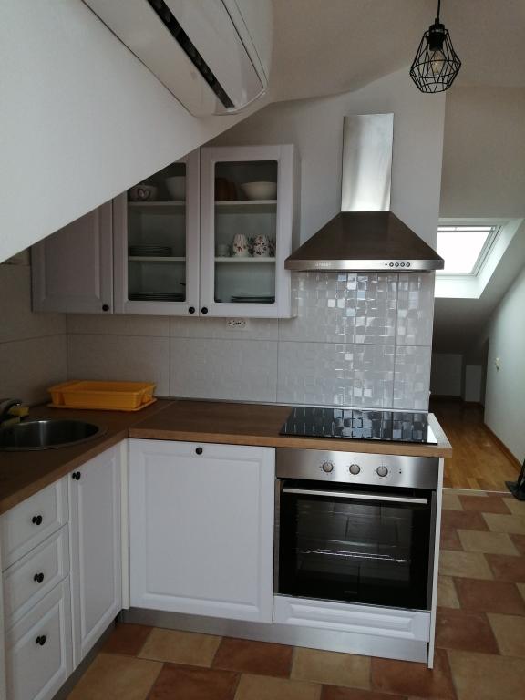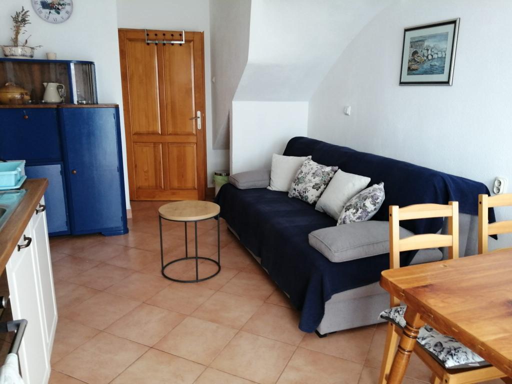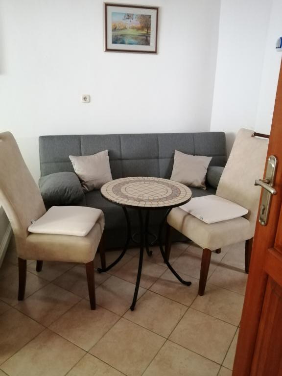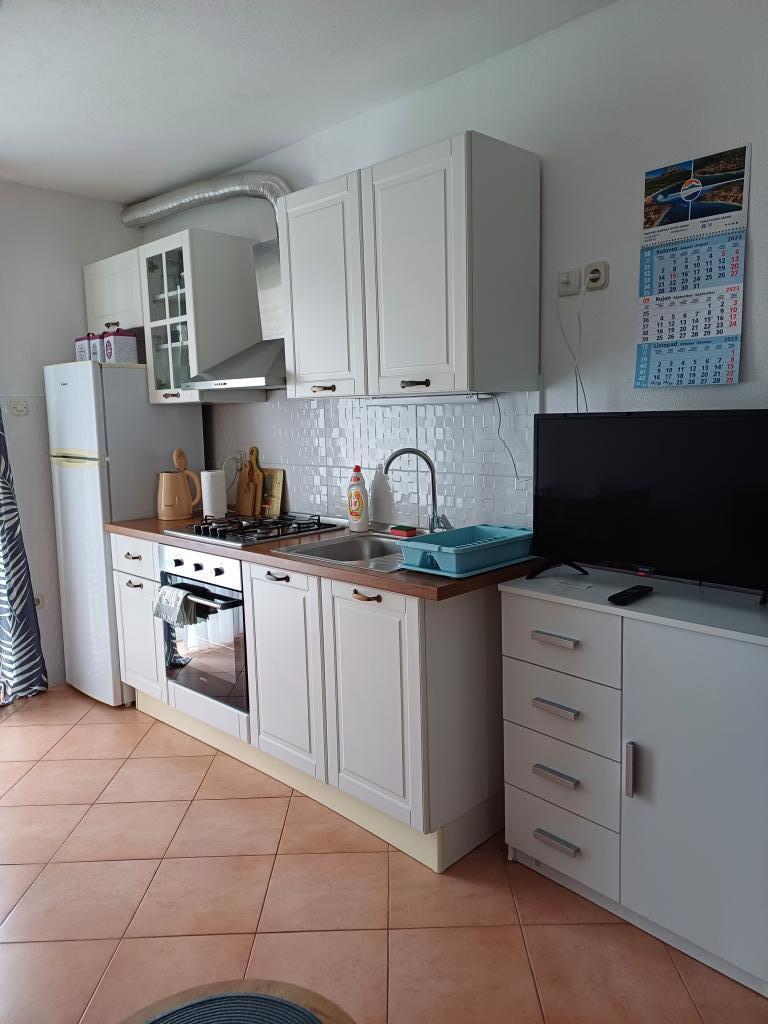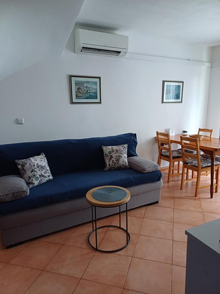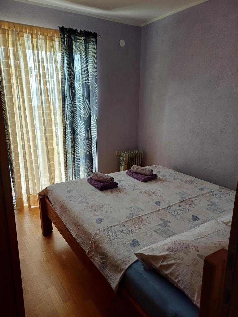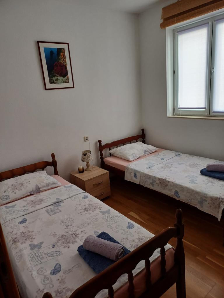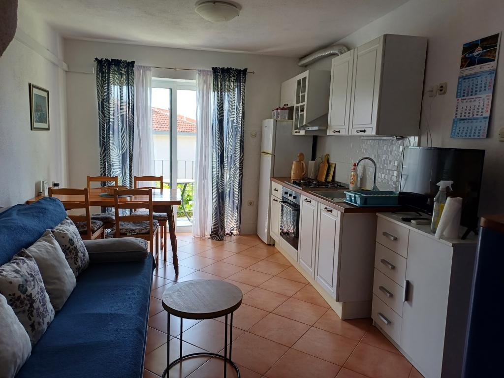 Appartement Lina is een volledig uitgerust appartement op een rustige plek nabij het centrum. Het is 3 minuten lopen naar het strand en dezelfde afstand naar het centrum. Het bevindt zich op de eerste verdieping van een woonhuis en bestaat uit een woonkamer die verbonden is met de keuken, een slaapkamer met een tweepersoonsbed en een slaapkamer met 2 eenpersoonsbedden en een badkamer. Het heeft ook een balkon met uitzicht op zee. Het is uitgerust met alle standaard huishoudelijke apparaten (koelkast, oven, fornuis) en is voorzien van airconditioning en een tv en een slaapbank in de woonkamer. De prijs is inclusief een parkeerplaats op 200 meter van het appartement, maar bij aankomst kunt u voor het uitladen van uw bagage een auto besturen op 30 meter van het appartement. De gastheer bevindt zich op dezelfde plek en zal bij aankomst de gasten verwelkomen en hen het appartement en de parkeerplaats laten zien en de sleutels overhandigen.