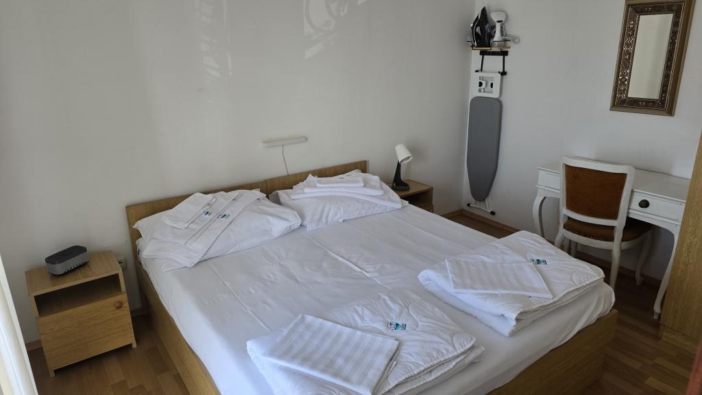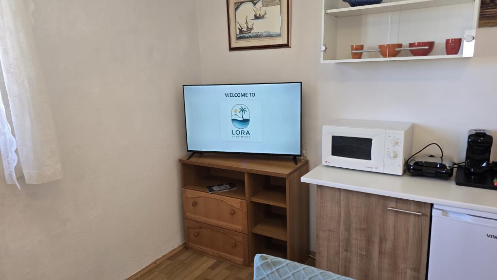 Lora Apartments biedt gasten een scala aan extra voorzieningen en apparatuur die bij de prijs van hun verblijf zijn inbegrepen, met als doel maximaal comfort en een zorgeloze vakantie. Elk appartement is volledig uitgerust en beschikt over een koffiezetapparaat met welkomstkoffie, waterkoker, broodrooster, ijsmachine, kluis, krachtige föhn met opzetstukken, digitale weegschaal, strijkijzer, stoomstrijkijzer, strijkplank en draadloze stofzuiger. Op het terrein staan twee fietsen, twee SUP's (stand-up paddleboards), een opvouwbare strandkar en andere benodigdheden voor een verblijf aan zee. We helpen gasten bij het organiseren van excursies in de omgeving, het huren van een boot (met of zonder schipper), transfers en het reserveren van restaurants. Het is mogelijk om aanbevelingen te krijgen voor stranden, wandelingen, fietsroutes en lokale bezienswaardigheden. Op verzoek kunnen we authentieke lokale producten zoals wijn, olijfolie, honing en vijgen rechtstreeks van vertrouwde lokale producenten leveren. Snelle en stabiele Starlink-internetverbinding is beschikbaar voor alle gasten en de gastheren zijn gedurende hun hele verblijf bereikbaar.