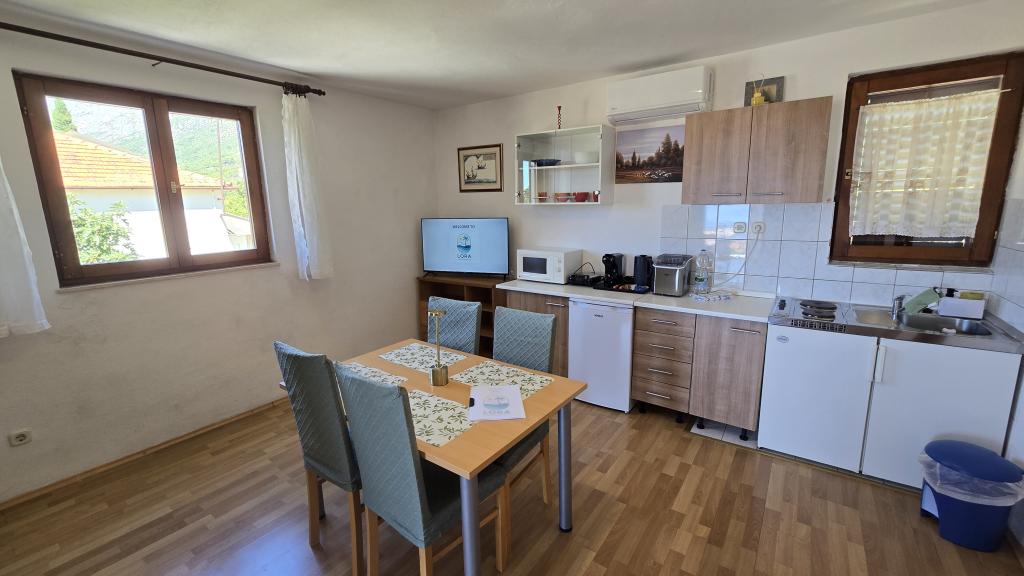 Lora Apartments is een familiebedrijf dat appartementencomplexen beheert in een rustige buurt van Gradac, op slechts 100 meter van de zee en op een paar minuten lopen van het stadscentrum. Het complex bestaat uit vijf modern ingerichte en volledig uitgeruste appartementen, perfect voor een aangenaam verblijf voor stellen en gezinnen. Elk appartement heeft een eigen balkon of terras en de binnenruimte is ingericht met de nadruk op functionaliteit en comfort. Gasten hebben toegang tot extra voorzieningen zoals fietsen, SUP's en strandspullen, waardoor een actieve en ontspannen vakantie mogelijk is zonder extra kosten. De nette en goed onderhouden binnenplaats is bedoeld om te ontspannen en van het buitenleven te genieten, en het hele complex biedt privacy en een huiselijke sfeer. Dankzij de ligging van het complex zijn het strand, de boulevard, winkels, de bakkerij, de markt en restaurants snel en gemakkelijk te bereiken, zonder dat een auto nodig is. Lora Apartments is een ideale keuze voor gasten die op zoek zijn naar een rustige accommodatie, de nabijheid van de zee en het centrum, en een persoonlijke benadering van de gastheer.