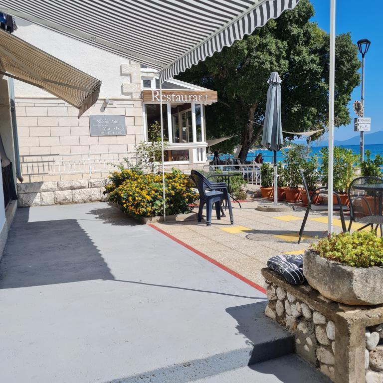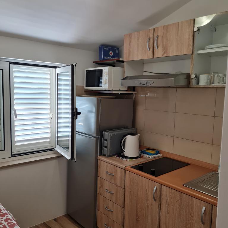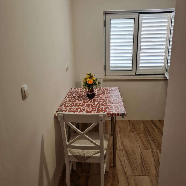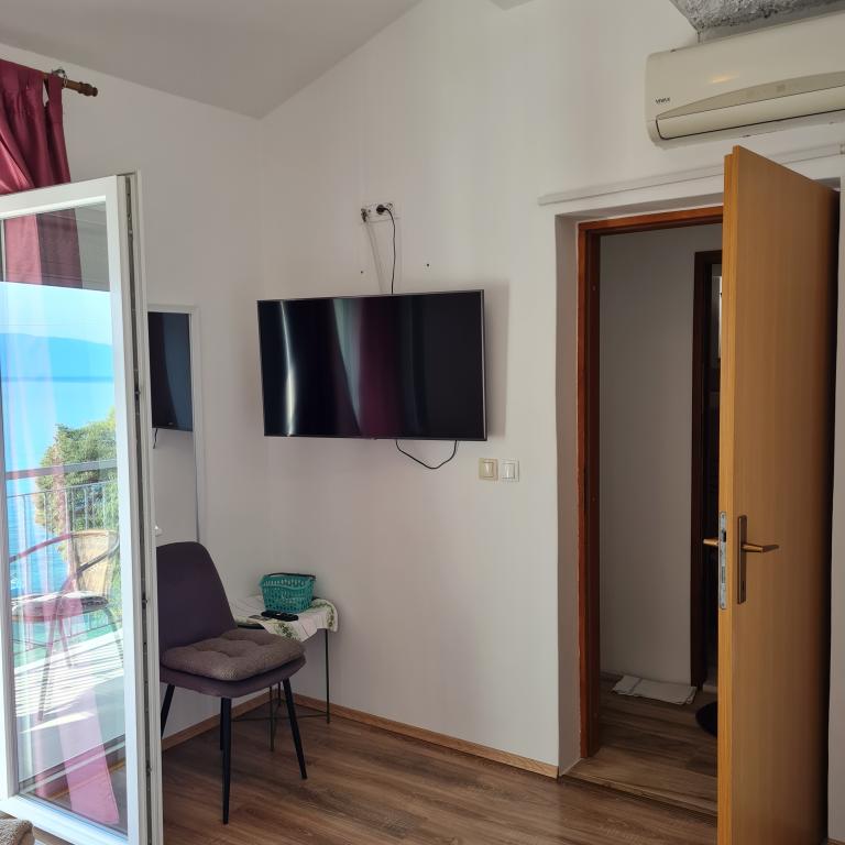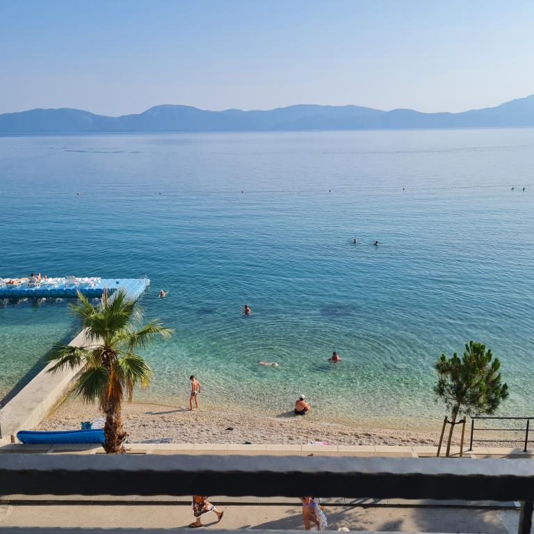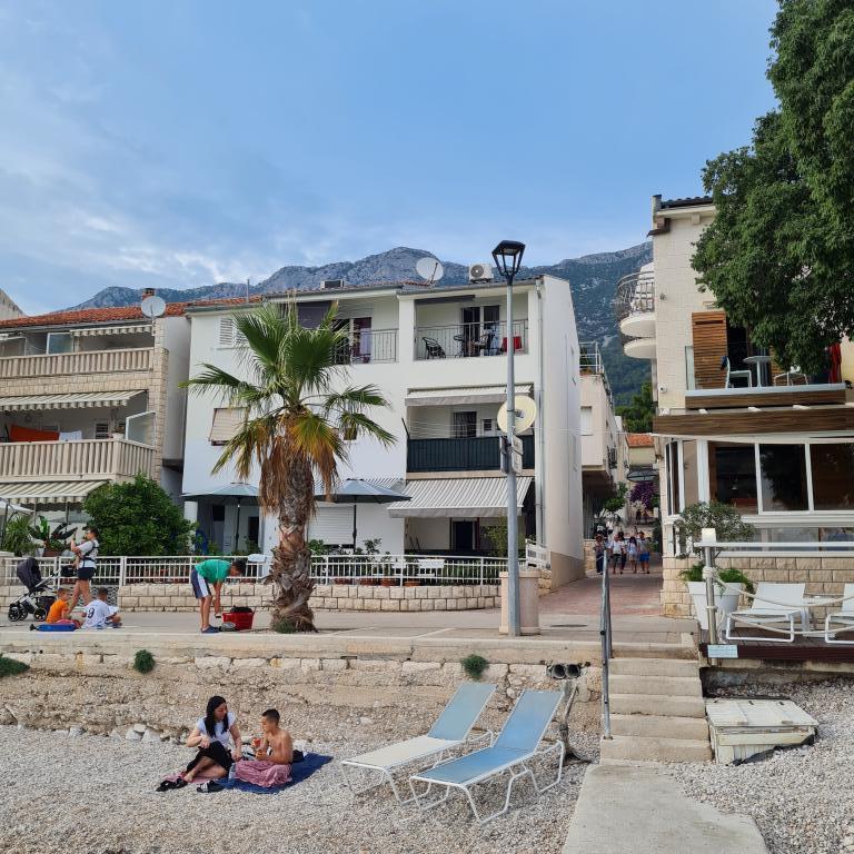 Ruime en volledig uitgeruste appartementen met uitzicht op zee, in het centrum van Gradac, naast de kust (zee). Voor het huis is er een tuin met een ruimte voor middagpauzes, ideaal voor lichte thee en koffie of om een boek naar keuze te lezen. Er is parkeergelegenheid voor de gasten. Naast de standaarduitrusting beschikt het appartement over airconditioning, satelliet-tv, smart-tv, gratis wifi en extra apparatuur zoals een magnetron, een waterkoker en zelfs een föhn. De nabijheid van winkels, restaurants en geldautomaten zorgt bovendien voor een fijnere en meer ontspannen vakantie zonder nervositeit, allemaal binnen een straal van maximaal 100 meter. (alles is "binnen handbereik van de gast") De faciliteit heeft een slogan: "Like at home".