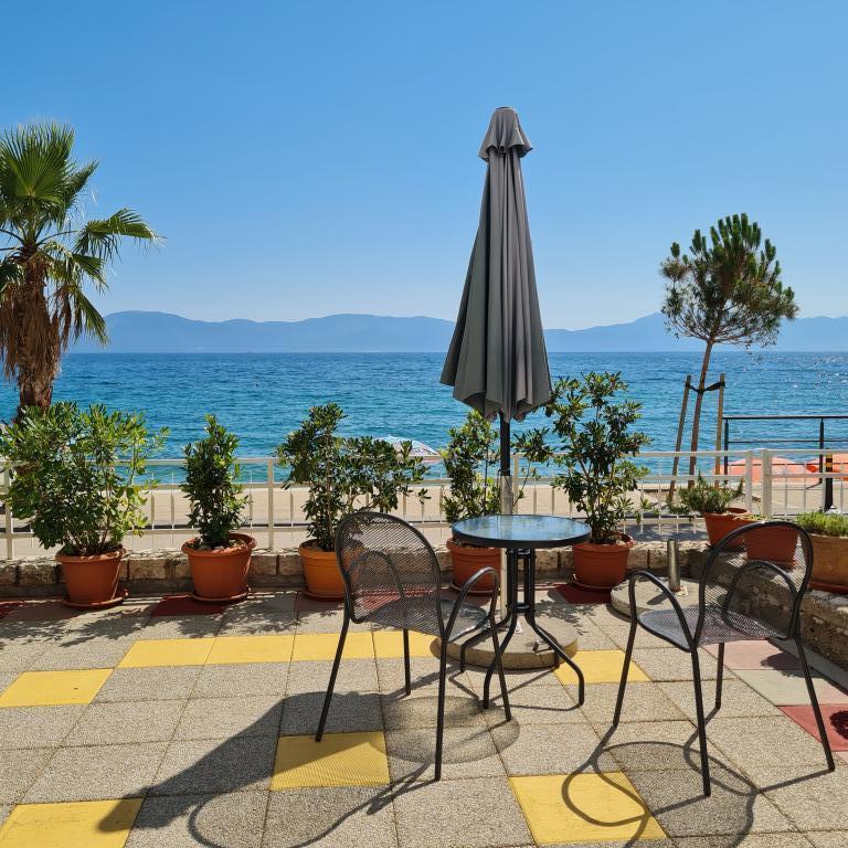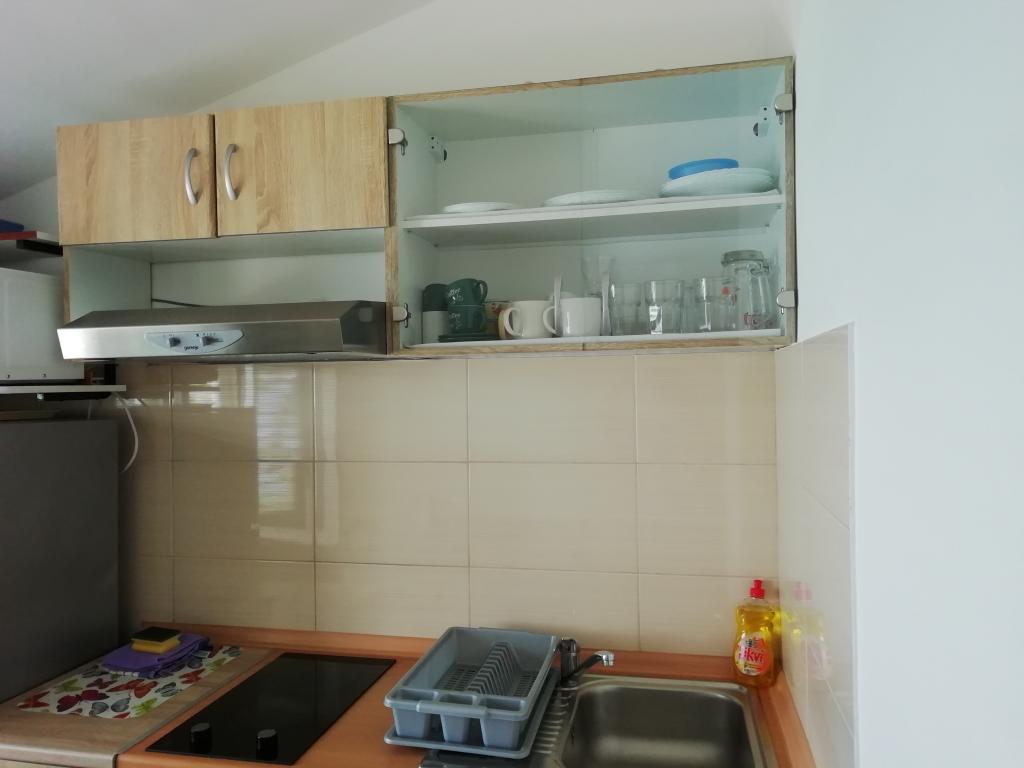 erg netjes, heeft alles wat je nodig hebt, zelfs statiegeldflessen als je een drankje wilt kopen waarvoor lege verpakkingen moeten worden ingewisseld voor vol. Groot balkon met uitzicht, de zee letterlijk op 5 meter van het appartement. De gastheer is vriendelijk, let op details, onopvallend maar altijd beschikbaar voor gasten. Hier heeft u volledige privacy en maximaal comfort. Een aanbeveling voor binnenlandse olijfolie die te vergelijken is met prijswinnend. PS, mijn man is ook tevreden al met al een 10