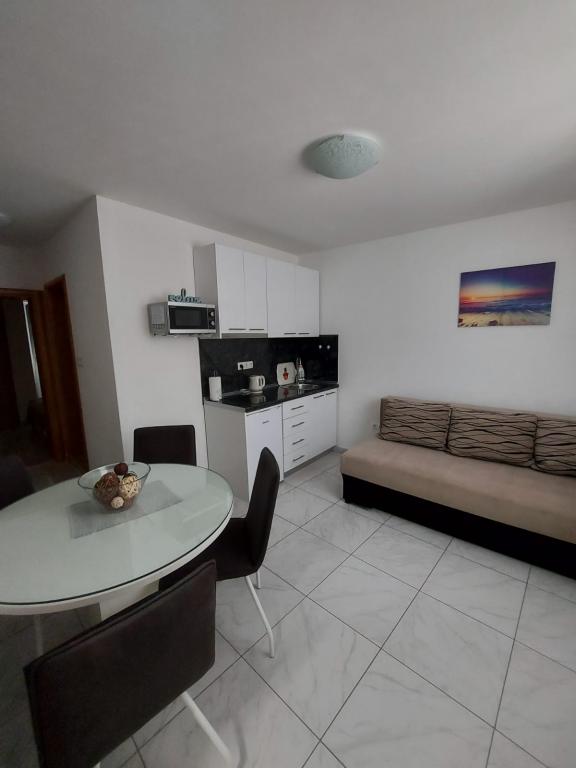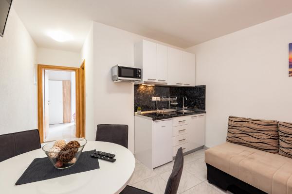 Wij waren in juli 2022 te gast in het appartement. Het is een ideale plek voor mensen die op zoek zijn naar een relatief rustige plek om te ontspannen. De eigenaren zijn erg aardig, bemoeien zich niet met het verblijf, maar zijn altijd behulpzaam en bieden hun producten heerlijke drankjes aan. Appartement, Huisvesting schoon, het enige nadeel is dat er weinig ruimte is voor persoonlijke spullen in het appartement 2+2 (een smalle kledingkast met een paar planken) en een heel smal balkon. Zeer goede locatie, dicht bij het strand en restaurants, bakker en winkel, ik beveel dit appartement aan.