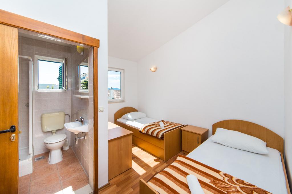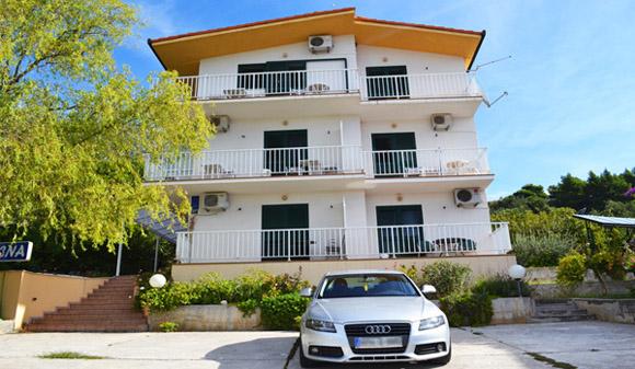 Villa Slavena ligt in een rustig toeristisch deel van Gradac, op 5 minuten lopen van het strand, het centrum, restaurants en andere voorzieningen die nodig zijn voor een actieve zomervakantie. . Het huis bestaat uit 7 studio-appartementen, waarvan 1 dubbel, 4 triple, 2 viervoudig en op de top van het huis is er 1 groot appartement voor 6-10 personen met 3 aparte slaapkamers, 2 toiletten, keuken en een balkon rondom het appartement met prachtig uitzicht op zee. Dit appartement heeft ook een wasmachine en een vaatwasser. De appartementen zijn volledig en modern uitgerust. Elk appartement beschikt over airconditioning, Wi-Fi internet, tv-sat. antenne. Naast de inhoud van het appartement hebben de gasten de beschikking over het gebruik van de binnenplaats voor diners en gezelligheid buiten voor het huis en het gebruik van open haarden, en voor het huis privéparkeergelegenheid alleen voor gasten.