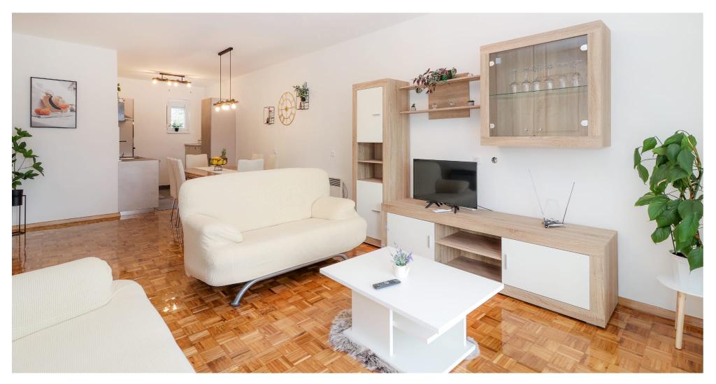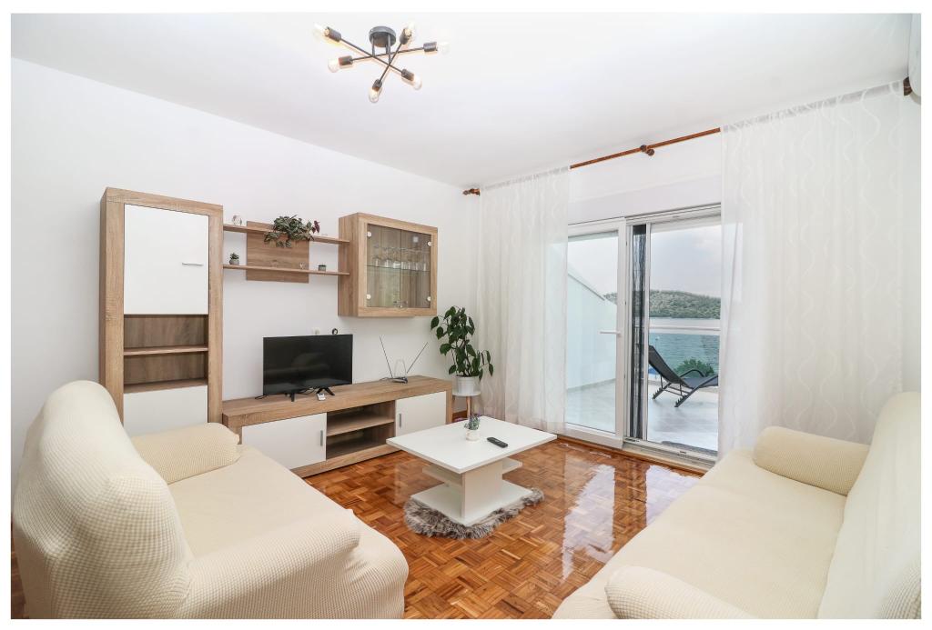 Geniet van uw vakantie in een modern appartement, direct aan zee gelegen, op slechts 30 meter van de kristalheldere Adriatische Zee. Het appartement ligt in het rustige dorpje Šparadići aan de prachtige Rivièra van Šibenik, ideaal om te ontspannen en te ontsnappen aan de drukte van de stad. Het ruime terras van 40 m² met panoramisch uitzicht op zee is de ideale plek om te genieten van uw ochtendkoffie of de avondzon. Het appartement is van alle gemakken voorzien voor een comfortabel verblijf: het beschikt over een smart-tv, gratis WiFi, een eigen parkeerplaats en een moderne keuken met een vaatwasser, magnetron en koffiezetapparaat. Gasten hebben bovendien toegang tot een moderne badkamer met inloopdouche, wat bijdraagt aan het comfort van hun verblijf. Kom en ervaar de authentieke Dalmatische sfeer met het comfort van moderne accommodatie!