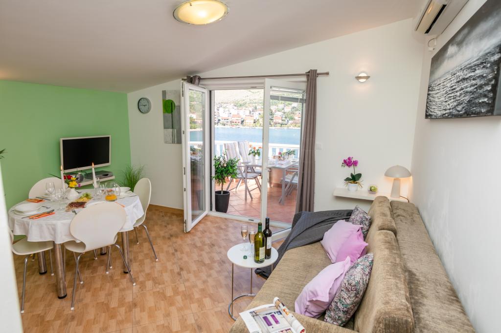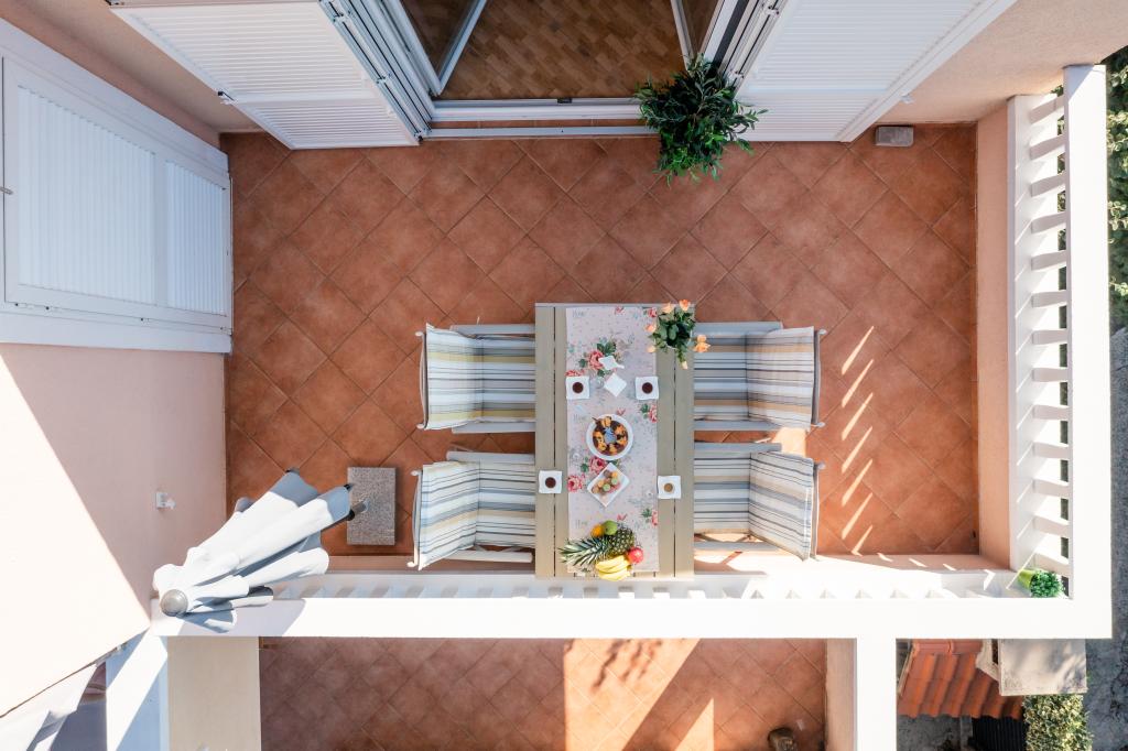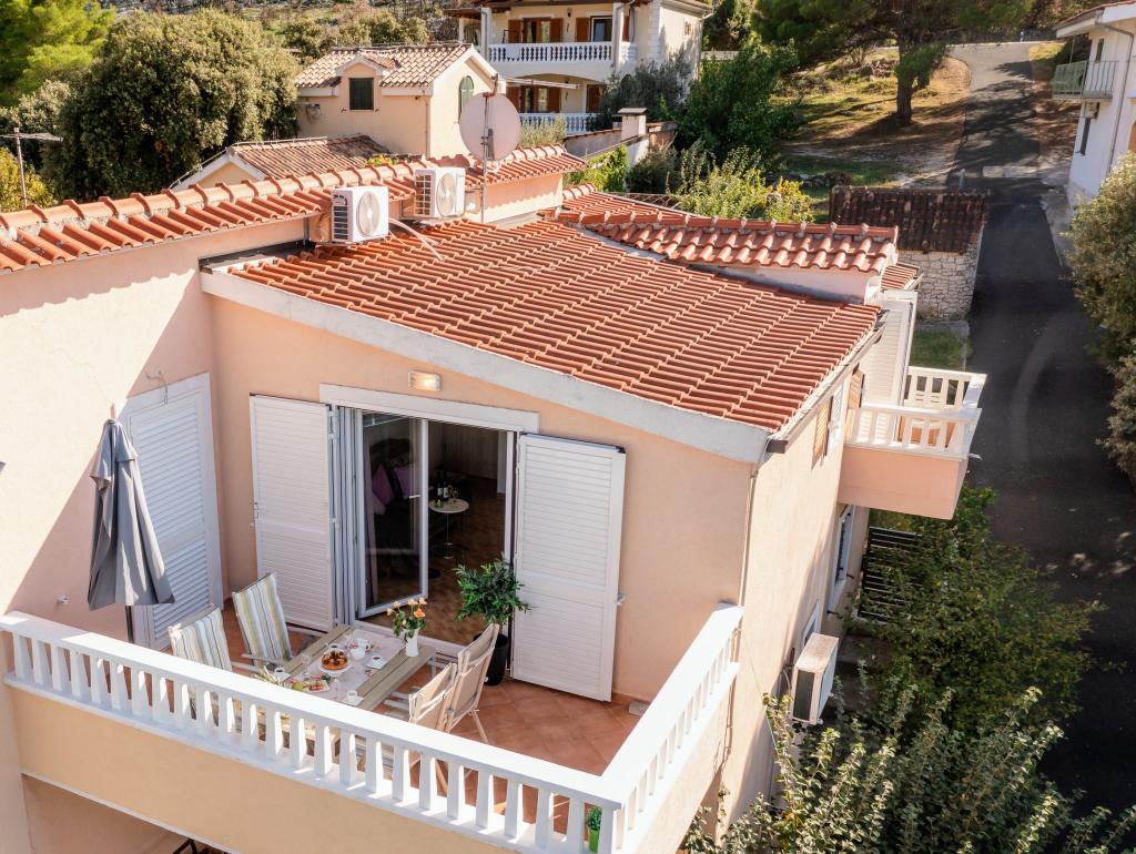 De woning is gelegen aan zee, aan de voet van de Jelinjak-heuvel aan de zuidkant van een lange, prachtige baai tussen de nederzettingen Grebaštica en Šparadići. Deze nederzettingen zijn verbonden door de hoofdweg en een goed onderhouden pad langs de zee, geschikt om te wandelen, joggen en fietsen. De woning is recent gebouwd. Het appartement heeft een terras met uitzicht op zee en de nederzetting Grebaštica. Het strand is van beton en kiezelsteen, met schaduwrijke plekken onder olijfbomen.