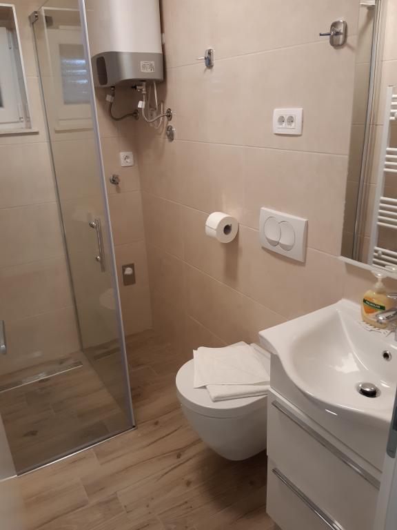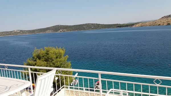 Hoewel het onderste appartement (A4) het kleinste is en niet meer sterren kan krijgen in de categorie, is het de favoriet van de gasten, en overdag blijft iedereen op het terras (100 vierkante meter) van het onderste appartement. Het appartement heeft een tv met film- en sportkanalen, airconditioning, internet en wasmachine, keuken, badkamer en twee slaapkamers voor 4 personen. Het bovenste appartement (A8) voor 8 personen met airconditioning en internet is verdeeld in twee eenheden, lager en hoger. De onderste unit heeft een groot terras (45 vierkante meter), tv met film- en sportkanalen. wasmachine, badkamer, keuken en kamer met twee bedden, en de bovenste unit heeft drie slaapkamers voor 6 personen, keuken en badkamer en een groot balkon (16 vierkante meter) met een prachtig uitzicht op zee.