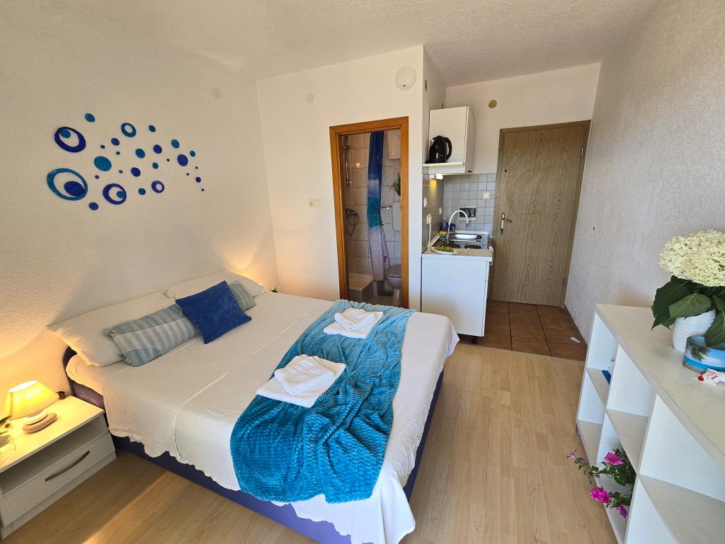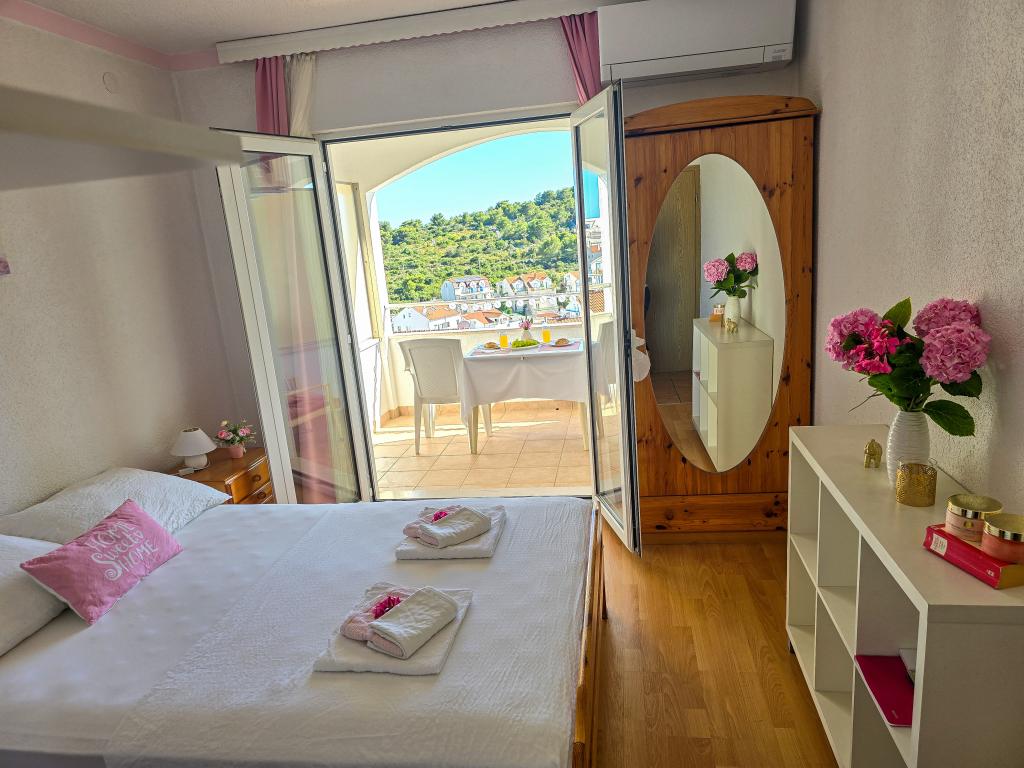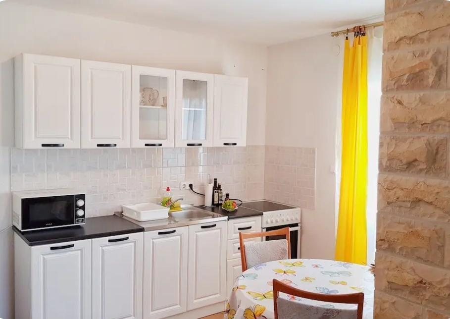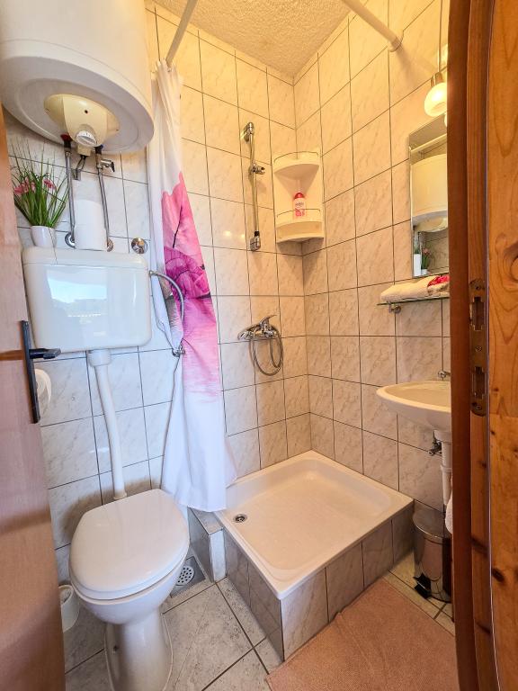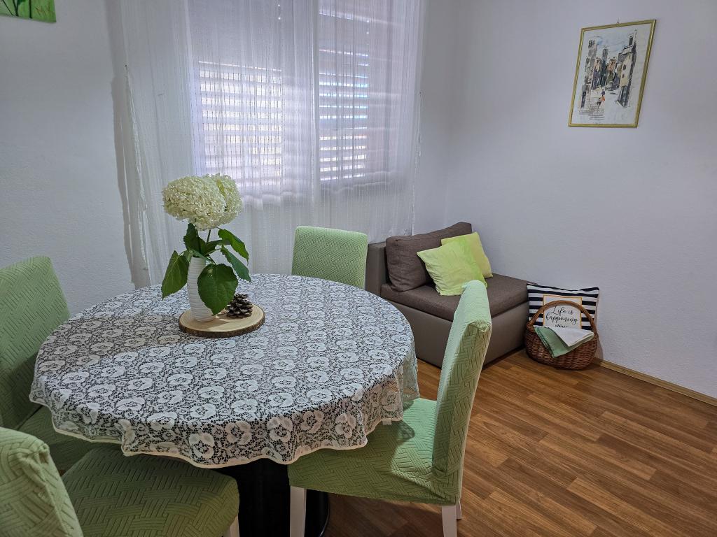 Grote smjetsaj, geweldig uitzicht vanaf het balkon, zeer netjes appartementen; zeer vriendelijke gastheren, onopvallend, en zeer toegankelijk voor alle informatie. Rustige omgeving, parkeergelegenheid recht tegenover het huis, supermarkt in de buurt, 15 min lopen naar het centrum. Plaza op afstand Pokonji over de mooie, schone zee, met diverse restaurants, in de buurt van het pad naar het strand steil (geweldige training), maar heeft een manier om te bereiken met de auto. Zeer tevreden.