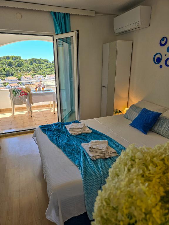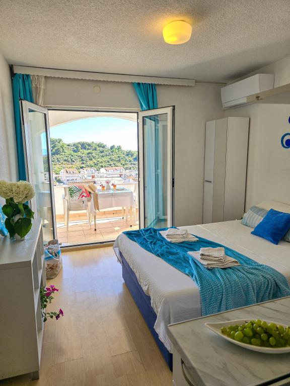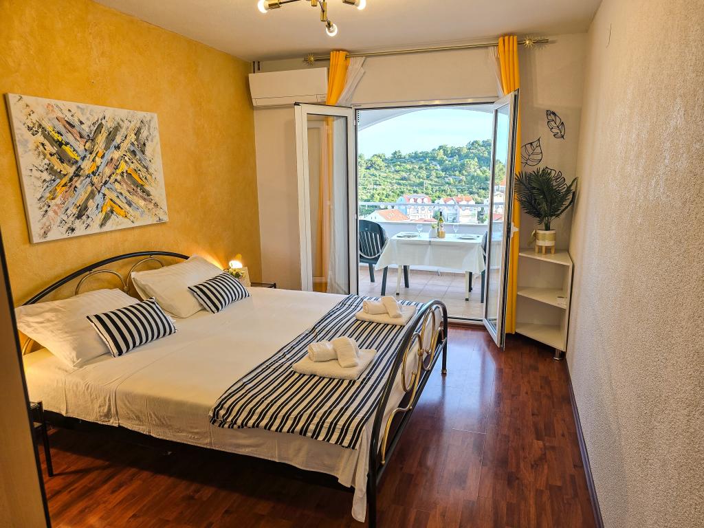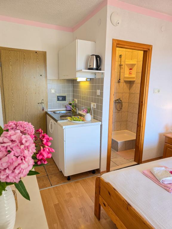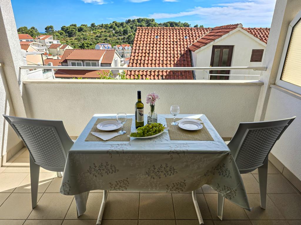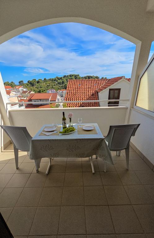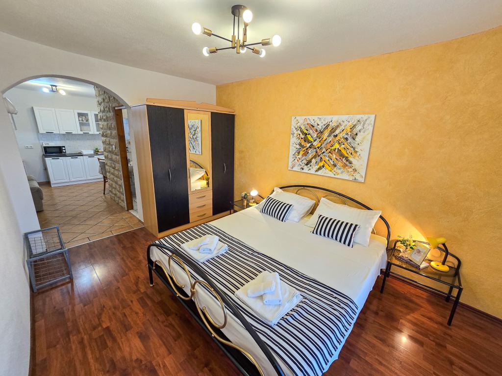 Grote smjetsaj, geweldig uitzicht vanaf het balkon, zeer netjes appartementen; zeer vriendelijke gastheren, onopvallend, en zeer toegankelijk voor alle informatie. Rustige omgeving, parkeergelegenheid recht tegenover het huis, supermarkt in de buurt, 15 min lopen naar het centrum. Plaza op afstand Pokonji over de mooie, schone zee, met diverse restaurants, in de buurt van het pad naar het strand steil (geweldige training), maar heeft een manier om te bereiken met de auto. Zeer tevreden.