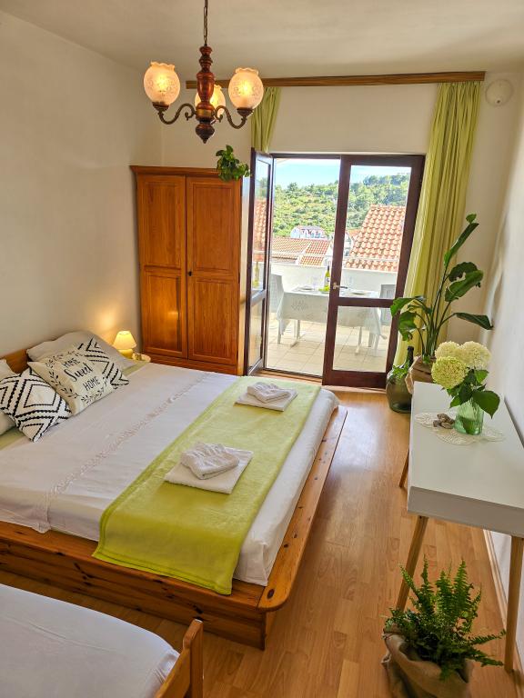 Wij zijn gevestigd op het eiland Hvar, in het rustige deel van de stad Hvar, op slechts 10-15 minuten lopen van het stadscentrum of 5 minuten met de auto. We bevinden ons op een paar minuten lopen van de kleine winkel waar je alles kunt kopen wat je nodig hebt en van de mooiste stranden in de stad. Het strand heeft twee restaurants, met de mogelijkheid om ligstoelen, parasols, boten, waterfietsen en dergelijke te huren. Ons familiehuis heeft een groot terras met tuin en een open haard die u kunt gebruiken. We hebben ook een eigen parkeerplaats. Bijna al onze appartementen / kamers hebben uitzicht op zee, de eilanden Vis en Korcula en de Pakleni-eilanden. Beddengoed, handdoeken (groot en klein), verblijfsbelasting, elektriciteit en water gebruik parkeerplaats, sanitaire voorzieningen, eindschoonmaak, huisdieren toegestaan en internet. In het geval dat u ervoor kiest om onze gasten te zijn, kunnen we u verwelkomen in de waterkant of catamaranbus, afhankelijk van het tijdstip van aankomst. Neem voor meer informatie gerust contact met ons op! Bedankt en welkom!