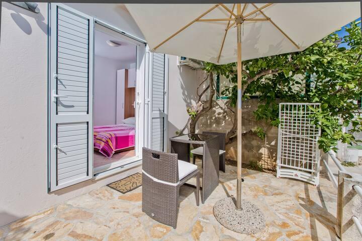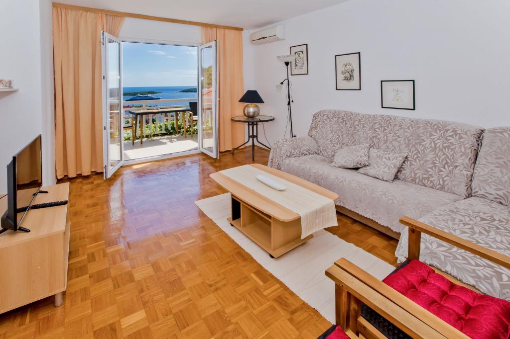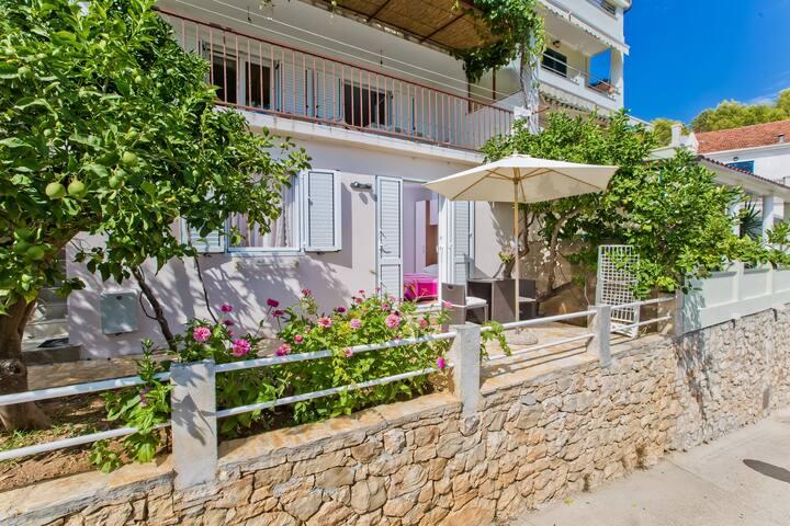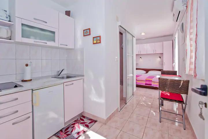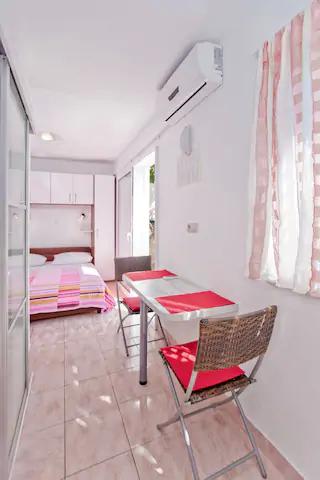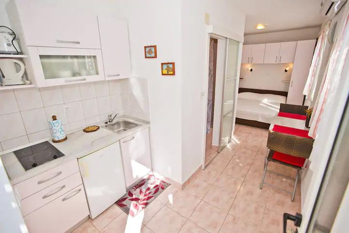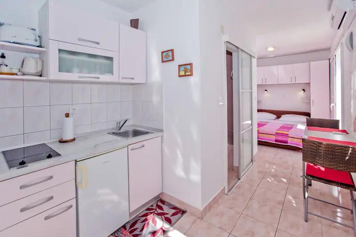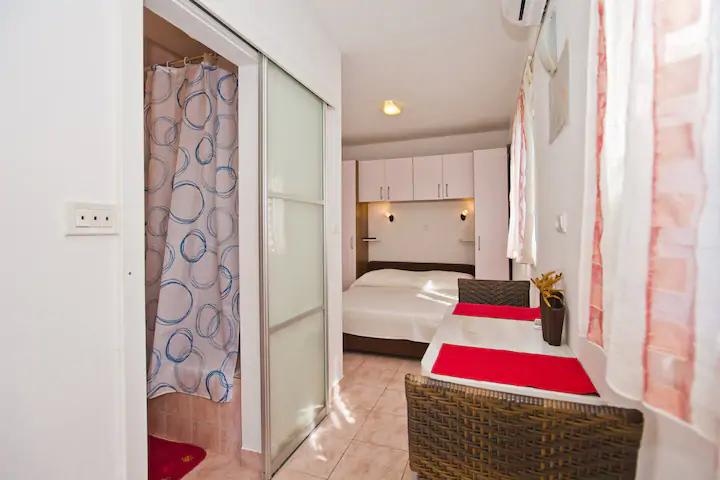 Het luxe appartement, modern ingericht, bevindt zich op de eerste verdieping van ons huis en heeft een totale oppervlakte van 70m2. Het appartement bestaat uit een slaapkamer, een woonkamer, een volledig uitgeruste keuken met wasmachine, een badkamer met ligbad en een extra toilet. De woon- en slaapkamer liggen op het zuiden en hebben aan de voorzijde een balkon met zitje om te genieten van het onvergetelijke uitzicht op de Paklin-eilanden en de zee. Het appartement is bedoeld voor het huisvesten van 2 volwassenen, maar ook voor het huisvesten van een gezin met twee kinderen. Ons studio-appartement bevindt zich op de begane grond van ons huis en is een ideale plek voor koppels om te ontspannen. Het appartement heeft een totale oppervlakte van 20 m2 en bestaat uit één smaakvol ingerichte kamer, en heeft een volledig ingerichte, moderne badkamer, een kamer met een tweepersoonsbed en een functionele keuken (met koffiezetapparaat, broodrooster, waterkoker etc. ). Beide appartementen zijn voorzien van airconditioning en uitgerust met een tv en Wi-Fi internetverbinding. Beide appartementen hebben een beveiligde parkeerplaats.