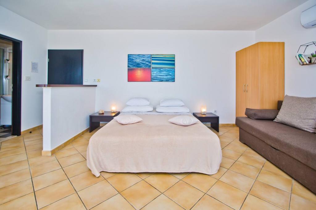 Onze appartementen bevinden zich in een gezinswoning in een rustige wijk van Hvar. We bieden accommodatie in comfortabele en modern ingerichte appartementen met uitzicht op de zee en de Pakleni-eilanden. De appartementen zijn onlangs gerenoveerd, met zorgvuldig geselecteerd meubilair, alle keukengerei, en zijn uitgerust met airconditioning en satelliettelevisie. We zijn ongeveer 15 minuten lopen van het stadscentrum en in slechts 5 minuten lopen van het appartement leidt een aangename wandeling door het dennenbos naar het grootste strand van Hvar, Pokoje Dol, waar u kunt genieten van het gastronomische aanbod met veel zon en kristalheldere zee. twee restaurants. Het strand is uitgerust met ligstoelen, parasols, kano's, waterfietsen en andere sportartikelen. WIJ BIEDEN AANTREKKELIJKE EXCURSIES AAN VIS-, BLAUWE EN GROENE GROTE EILANDEN, DEZE EILANDEN MET SPECIALE KORTING EN ANDERE VOORDELEN ALLEEN VOOR ONZE GASTEN! Tot ziens in Hvar :)