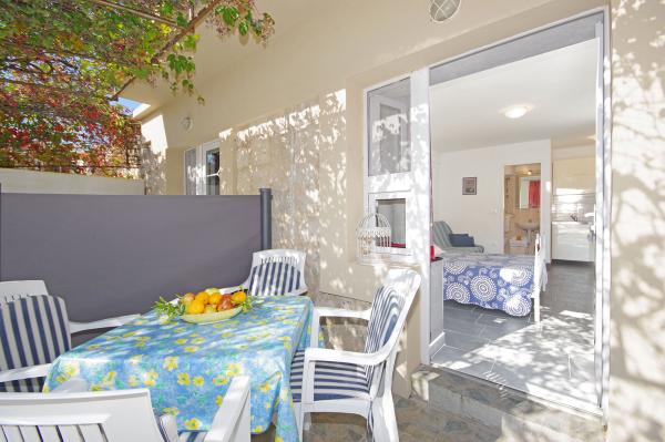 We verbleven comfortabel met z'n drieën in Studio 1 met uitzicht op zee. Het ligt vlakbij het strand en heeft een prachtig terras met pergola.