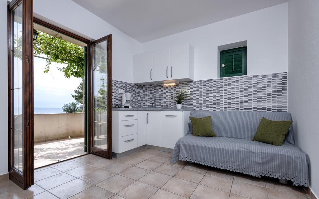 Apartments Dolac - Ruime appartementen met de nadruk op comfort en kwaliteit met vanuit elk appartement uitzicht op zee. Wij zijn gelegen op 100 m van het centrum en het strand, 20 m van de winkel, nog 3-4 stranden bevinden zich op een afstand van maximaal 1000 m. Café-bars bevinden zich ook op 100 m van ons, en restaurant 100 m, restaurant Rot 800 m, strandbar Šanpjerin 800 m.