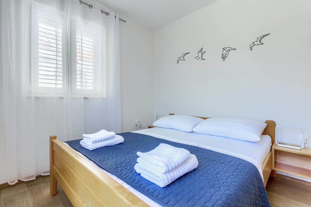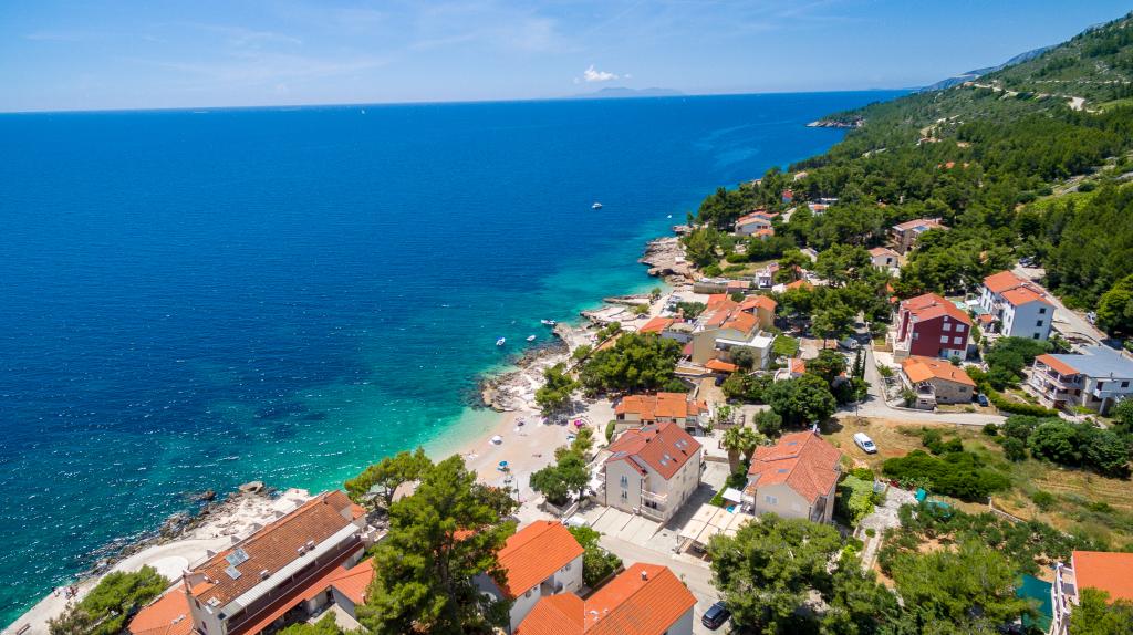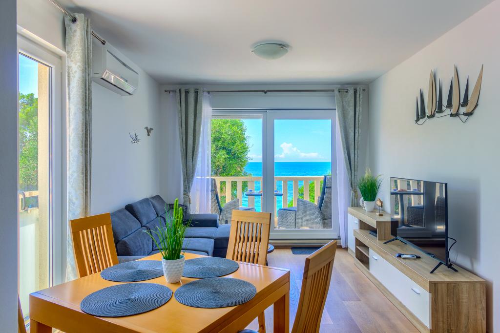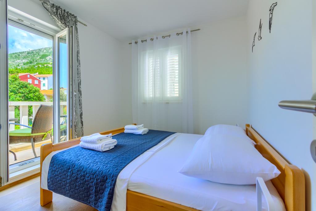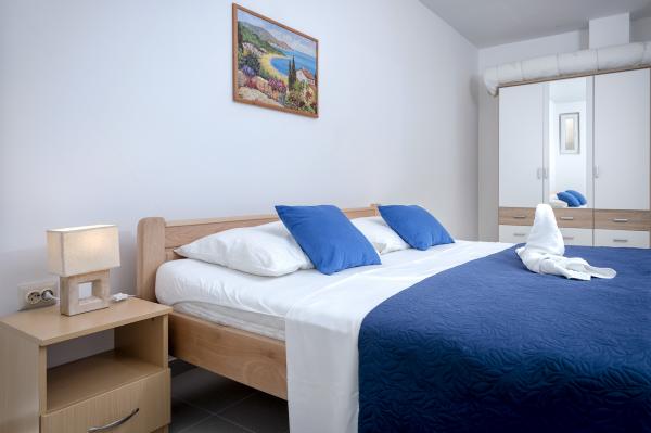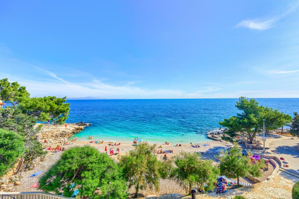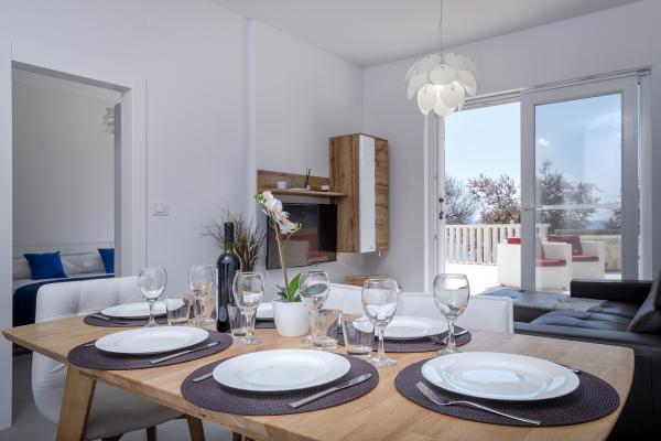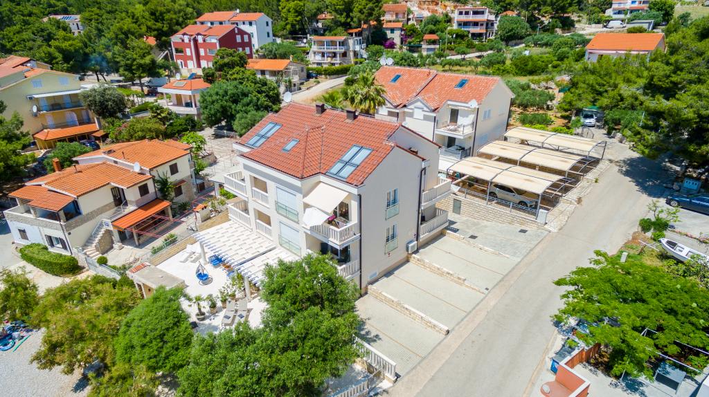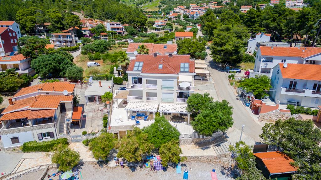 Nieuw gebouwde en modern ingerichte appartementen bevinden zich direct naast het strand in het rustige stadje Ivan Dolac. Appartementen Unit 1 en Unit 6 zijn voor 4 personen, ze bestaan uit een slaapkamer met een tweepersoonsbed 160 x 200, een badkamer met douche, een keuken en een eetkamer, en een woonkamer met SAT-TV en een slaapbank, en een terras met een prachtig uitzicht op het strand, de zee en de eilanden. Appartementen P1 en P2 zijn voor 8 personen, ze bestaan uit 3 slaapkamers en een slaapbank in de woonkamer, 2 badkamers, een volledig uitgeruste keuken met vaatwasser, een eetkamer en een eettafel op het grote terras ervoor met uitzicht van de zee. Appartement P2 heeft een grotere oppervlakte dan P1, omdat het een volledige slaapkamer en badkamer op de verdieping eronder heeft. Een restaurant en cafés liggen op slechts 20 meter afstand en een winkel op 100 meter van het appartement. Hoewel het huis in het centrum van dit kleine toeristische stadje ligt, biedt het volledige rust en privacy omdat de gasten voornamelijk gezinnen met kleine kinderen zijn die genieten van de prachtige stranden en de kristalheldere zee.