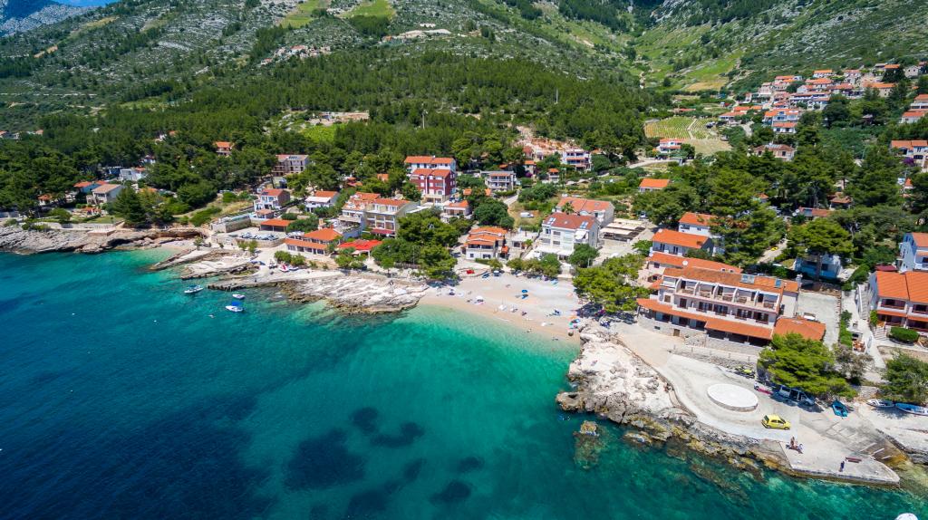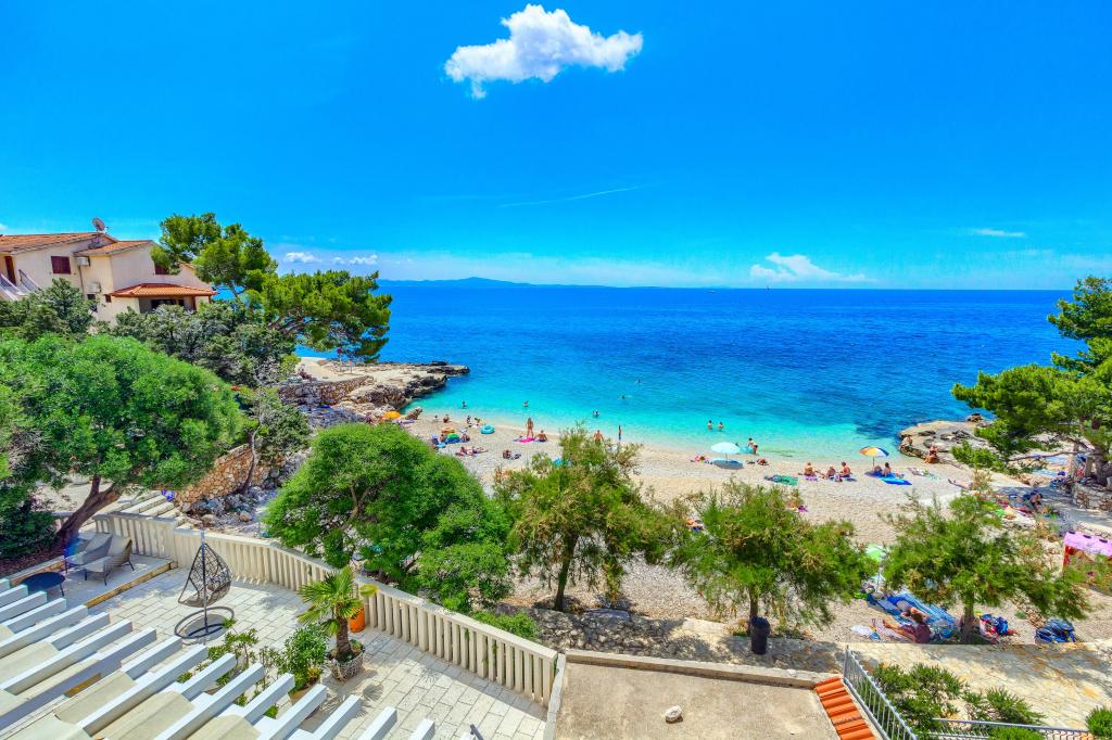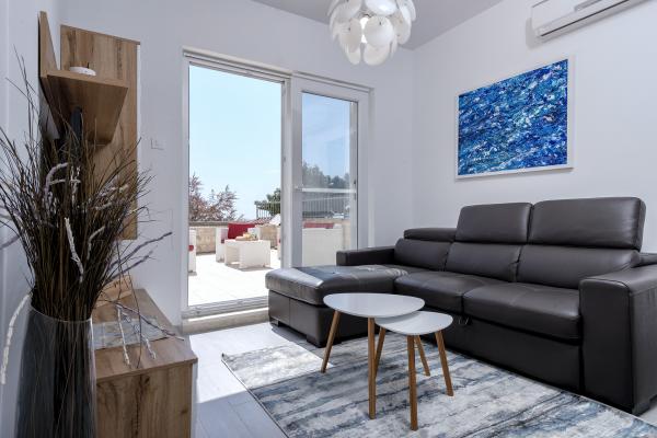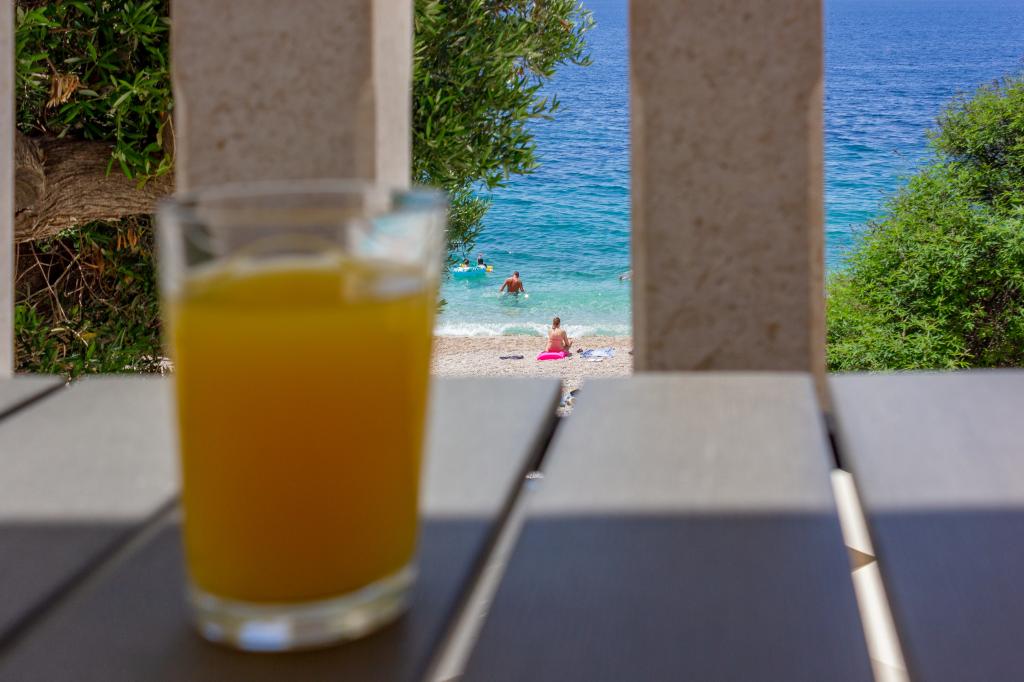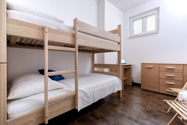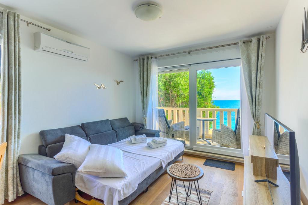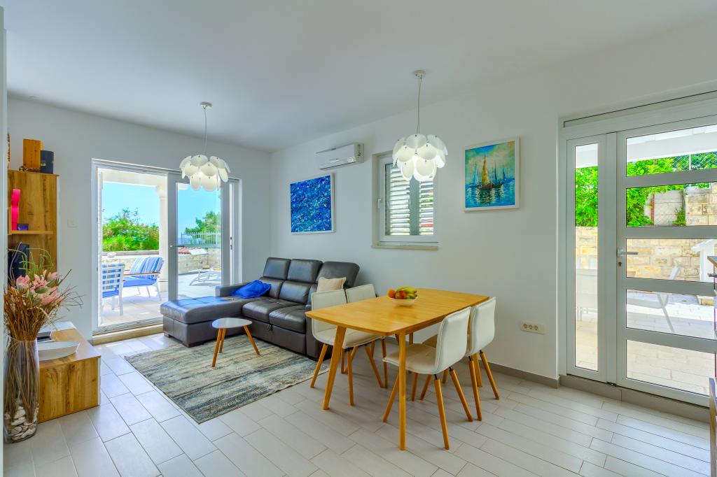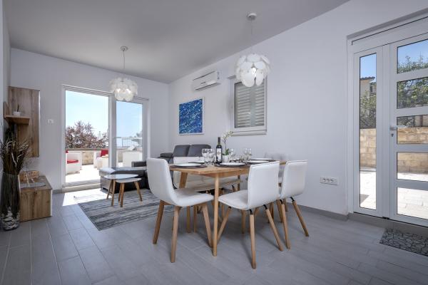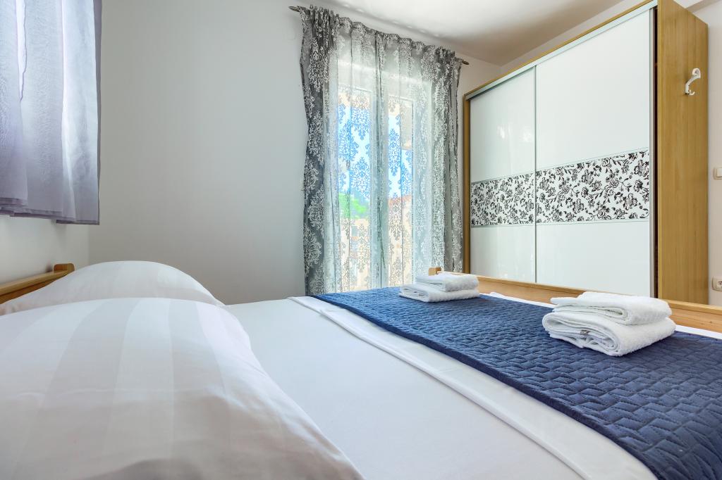 Nieuw gebouwde en modern ingerichte appartementen bevinden zich direct naast het strand in het rustige stadje Ivan Dolac. Appartementen Unit 1 en Unit 6 zijn voor 4 personen, ze bestaan uit een slaapkamer met een tweepersoonsbed 160 x 200, een badkamer met douche, een keuken en een eetkamer, en een woonkamer met SAT-TV en een slaapbank, en een terras met een prachtig uitzicht op het strand, de zee en de eilanden. Appartementen P1 en P2 zijn voor 8 personen, ze bestaan uit 3 slaapkamers en een slaapbank in de woonkamer, 2 badkamers, een volledig uitgeruste keuken met vaatwasser, een eetkamer en een eettafel op het grote terras ervoor met uitzicht van de zee. Appartement P2 heeft een grotere oppervlakte dan P1, omdat het een volledige slaapkamer en badkamer op de verdieping eronder heeft. Een restaurant en cafés liggen op slechts 20 meter afstand en een winkel op 100 meter van het appartement. Hoewel het huis in het centrum van dit kleine toeristische stadje ligt, biedt het volledige rust en privacy omdat de gasten voornamelijk gezinnen met kleine kinderen zijn die genieten van de prachtige stranden en de kristalheldere zee.