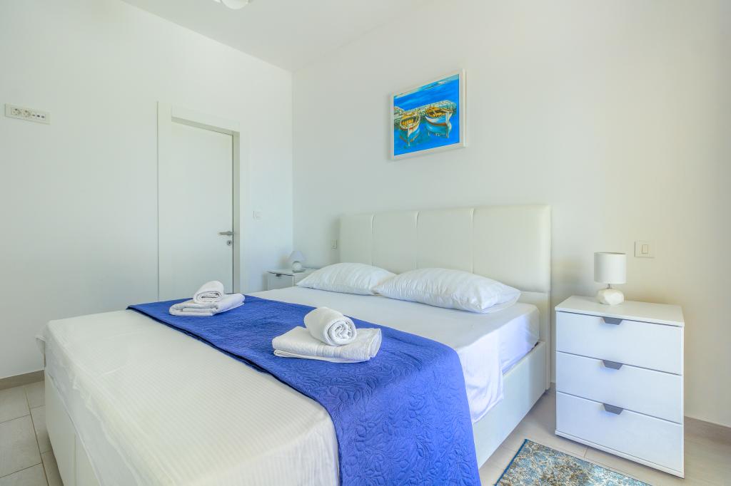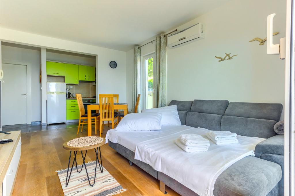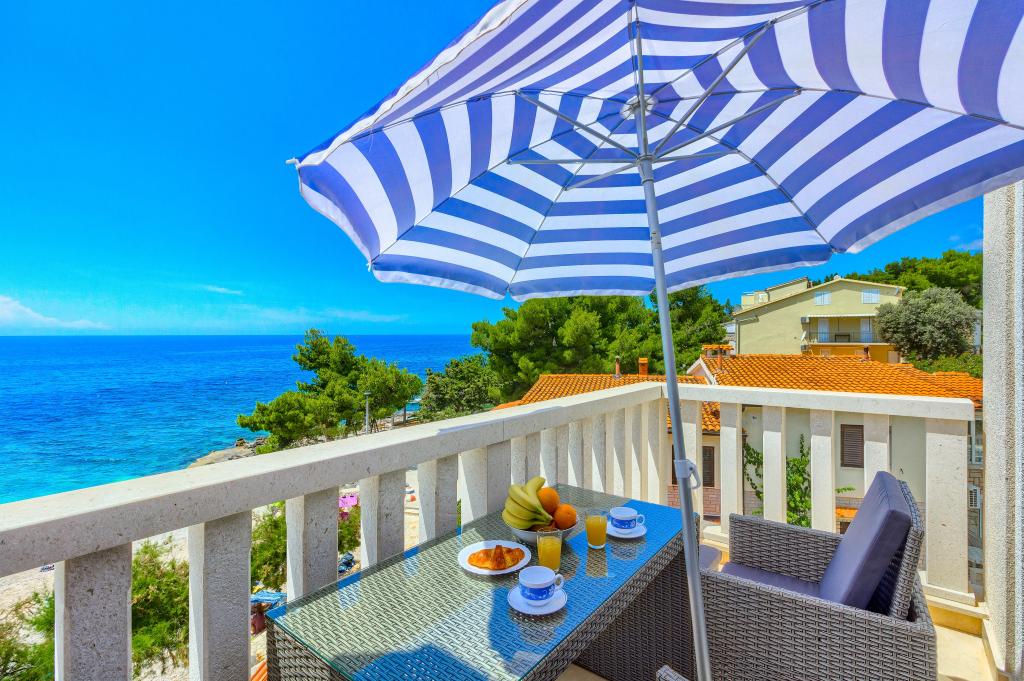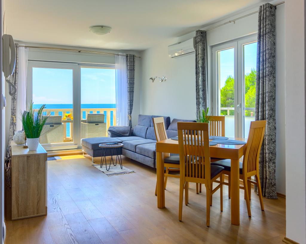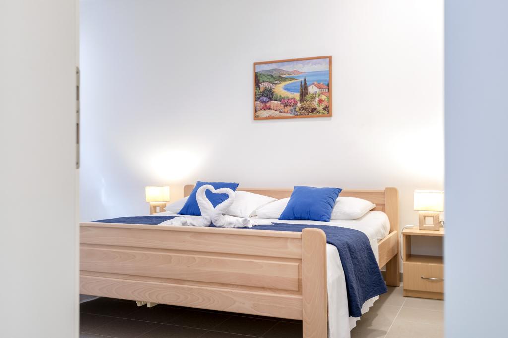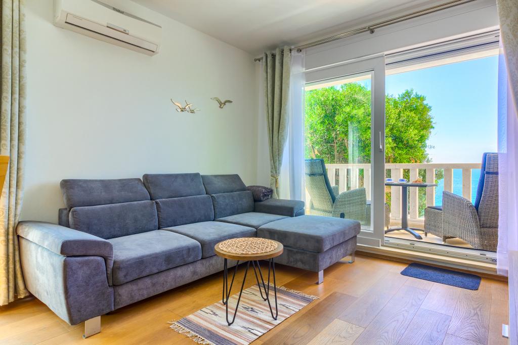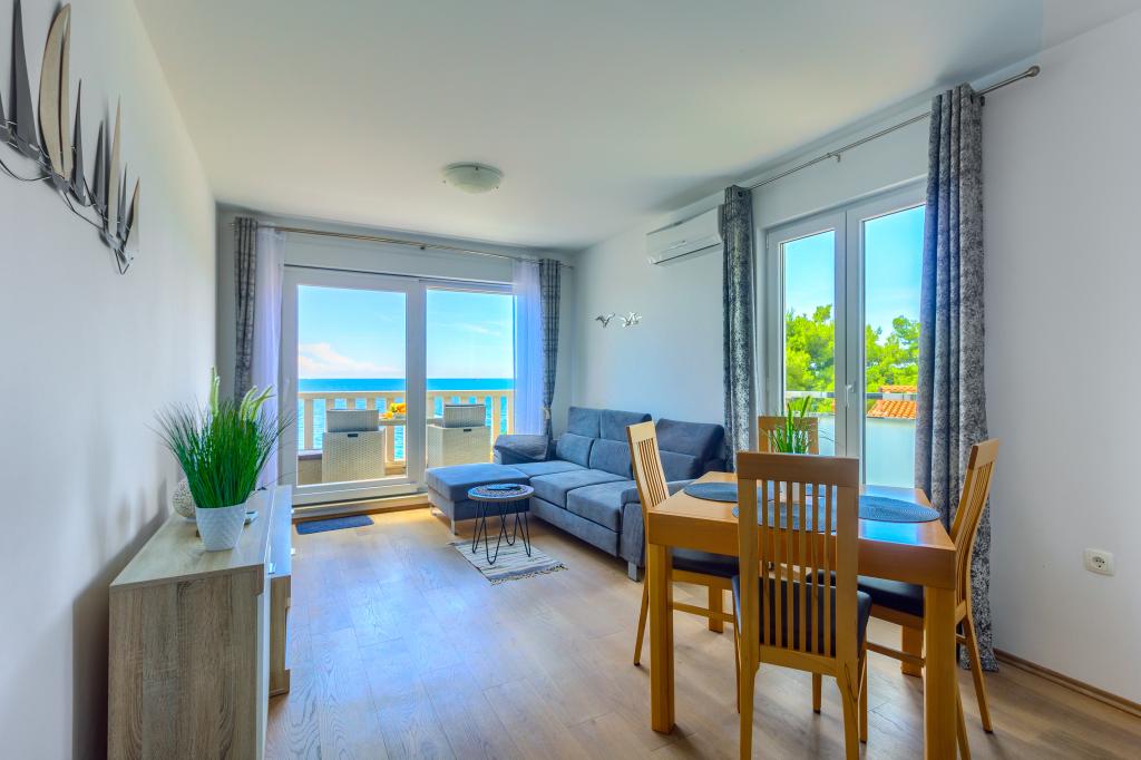 Nieuw gebouwde en modern ingerichte appartementen bevinden zich direct naast het strand in het rustige stadje Ivan Dolac. Appartementen Unit 1 en Unit 6 zijn voor 4 personen, ze bestaan uit een slaapkamer met een tweepersoonsbed 160 x 200, een badkamer met douche, een keuken en een eetkamer, en een woonkamer met SAT-TV en een slaapbank, en een terras met een prachtig uitzicht op het strand, de zee en de eilanden. Appartementen P1 en P2 zijn voor 8 personen, ze bestaan uit 3 slaapkamers en een slaapbank in de woonkamer, 2 badkamers, een volledig uitgeruste keuken met vaatwasser, een eetkamer en een eettafel op het grote terras ervoor met uitzicht van de zee. Appartement P2 heeft een grotere oppervlakte dan P1, omdat het een volledige slaapkamer en badkamer op de verdieping eronder heeft. Een restaurant en cafés liggen op slechts 20 meter afstand en een winkel op 100 meter van het appartement. Hoewel het huis in het centrum van dit kleine toeristische stadje ligt, biedt het volledige rust en privacy omdat de gasten voornamelijk gezinnen met kleine kinderen zijn die genieten van de prachtige stranden en de kristalheldere zee.