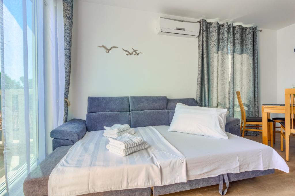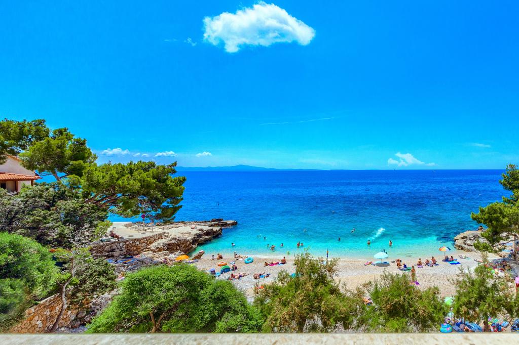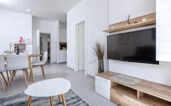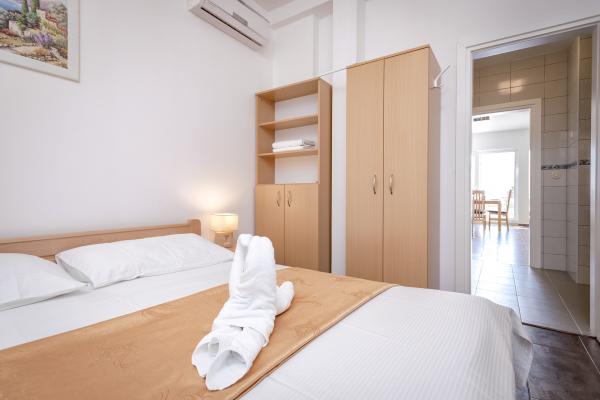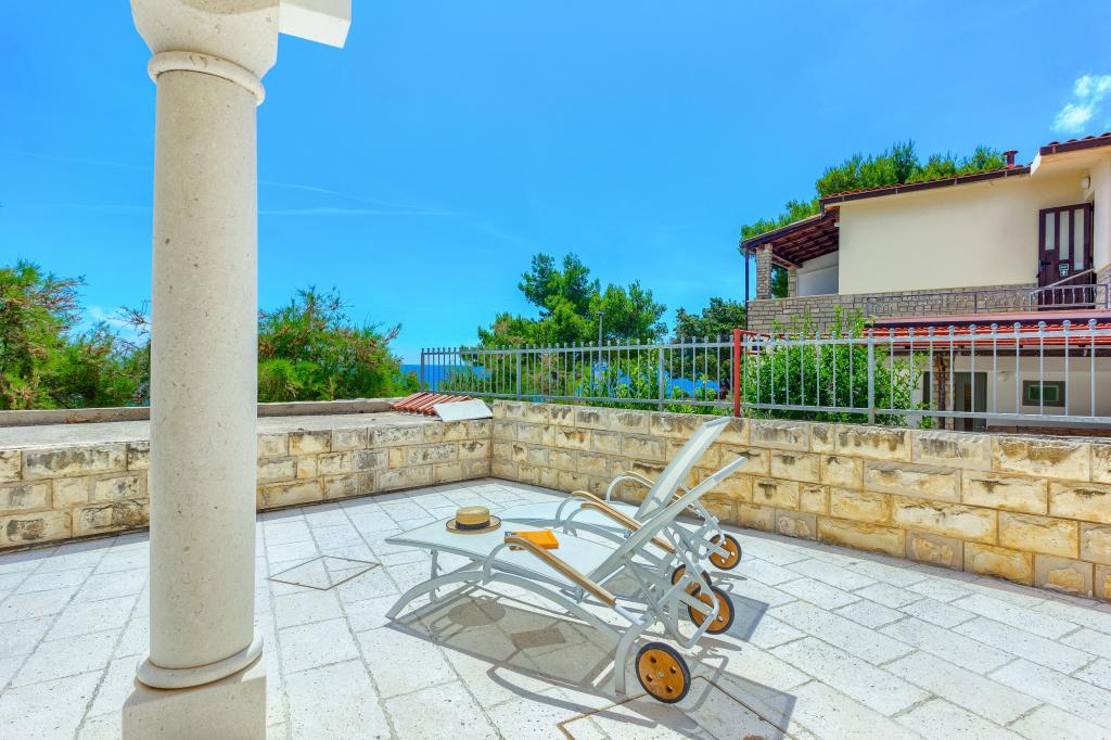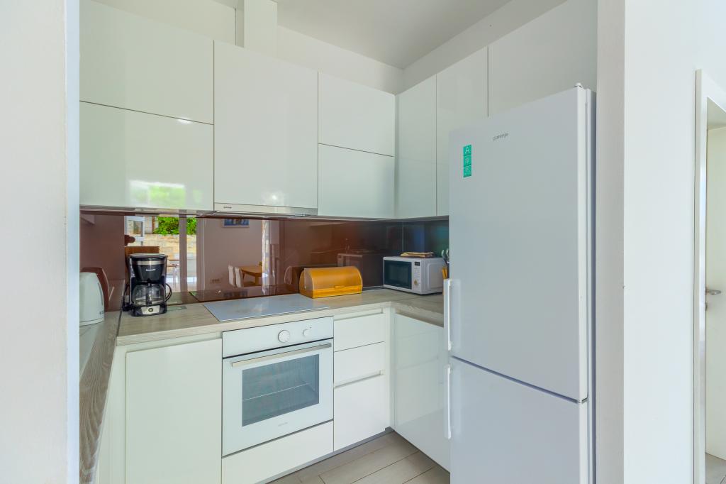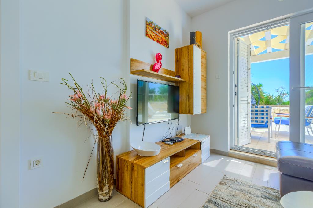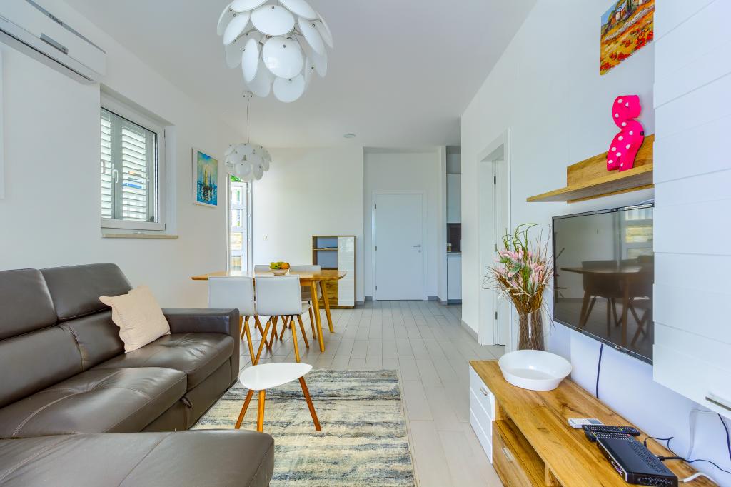 Nieuw gebouwde en modern ingerichte appartementen bevinden zich direct naast het strand in het rustige stadje Ivan Dolac. Appartementen Unit 1 en Unit 6 zijn voor 4 personen, ze bestaan uit een slaapkamer met een tweepersoonsbed 160 x 200, een badkamer met douche, een keuken en een eetkamer, en een woonkamer met SAT-TV en een slaapbank, en een terras met een prachtig uitzicht op het strand, de zee en de eilanden. Appartementen P1 en P2 zijn voor 8 personen, ze bestaan uit 3 slaapkamers en een slaapbank in de woonkamer, 2 badkamers, een volledig uitgeruste keuken met vaatwasser, een eetkamer en een eettafel op het grote terras ervoor met uitzicht van de zee. Appartement P2 heeft een grotere oppervlakte dan P1, omdat het een volledige slaapkamer en badkamer op de verdieping eronder heeft. Een restaurant en cafés liggen op slechts 20 meter afstand en een winkel op 100 meter van het appartement. Hoewel het huis in het centrum van dit kleine toeristische stadje ligt, biedt het volledige rust en privacy omdat de gasten voornamelijk gezinnen met kleine kinderen zijn die genieten van de prachtige stranden en de kristalheldere zee.