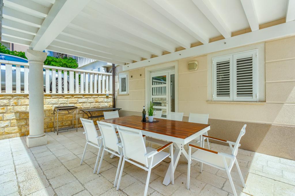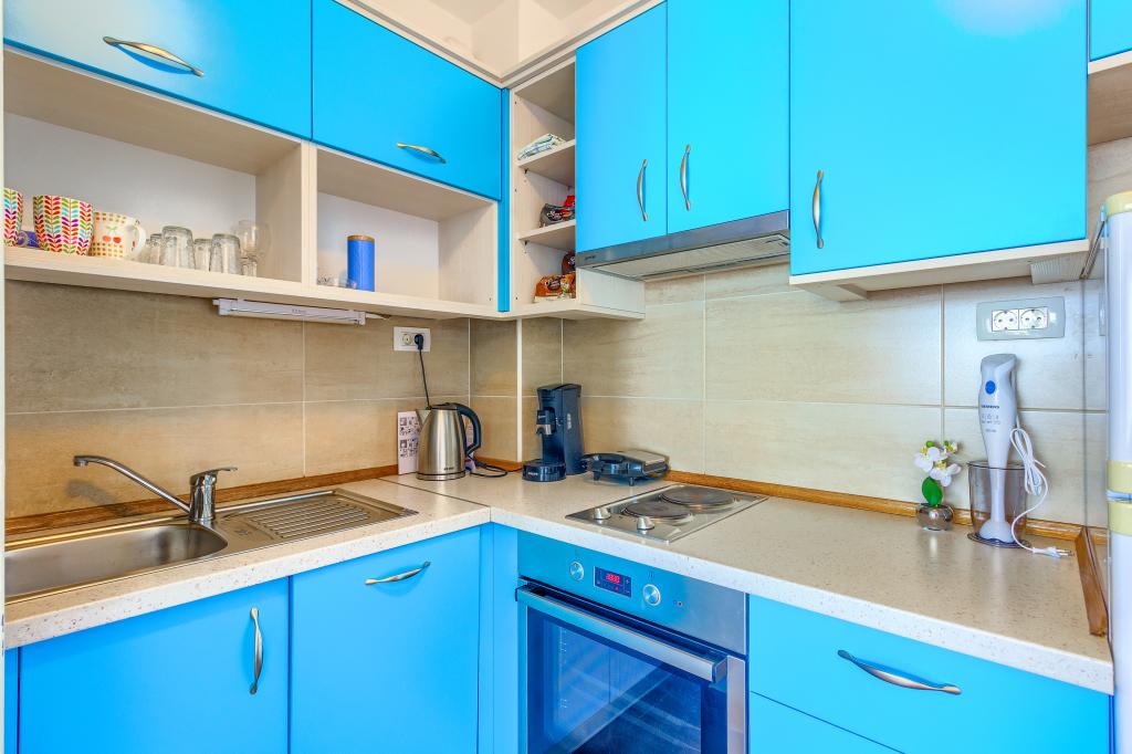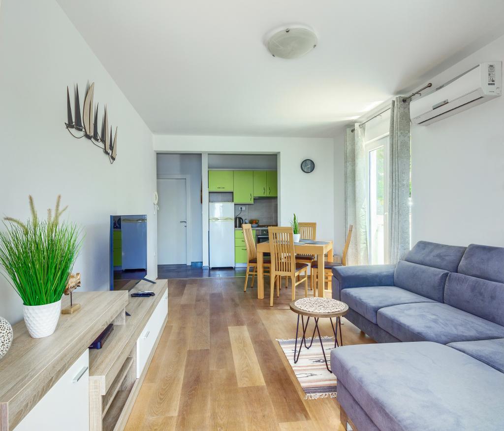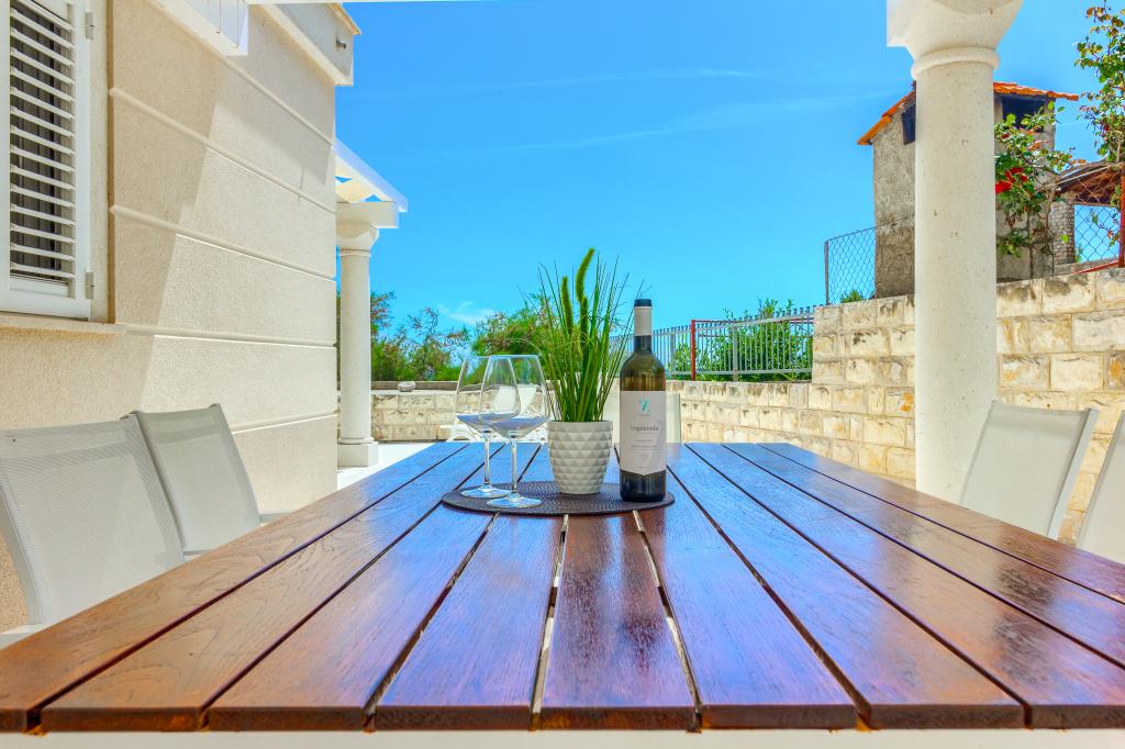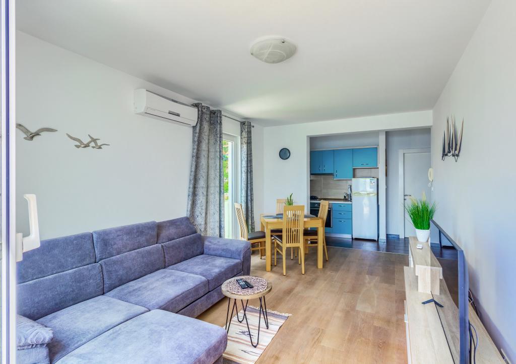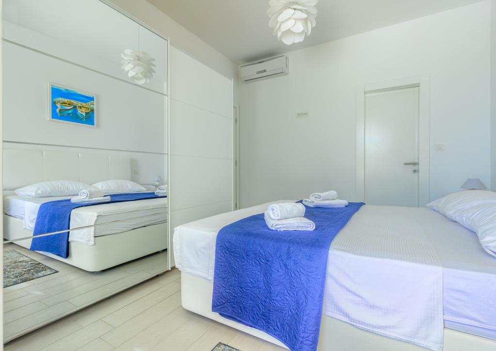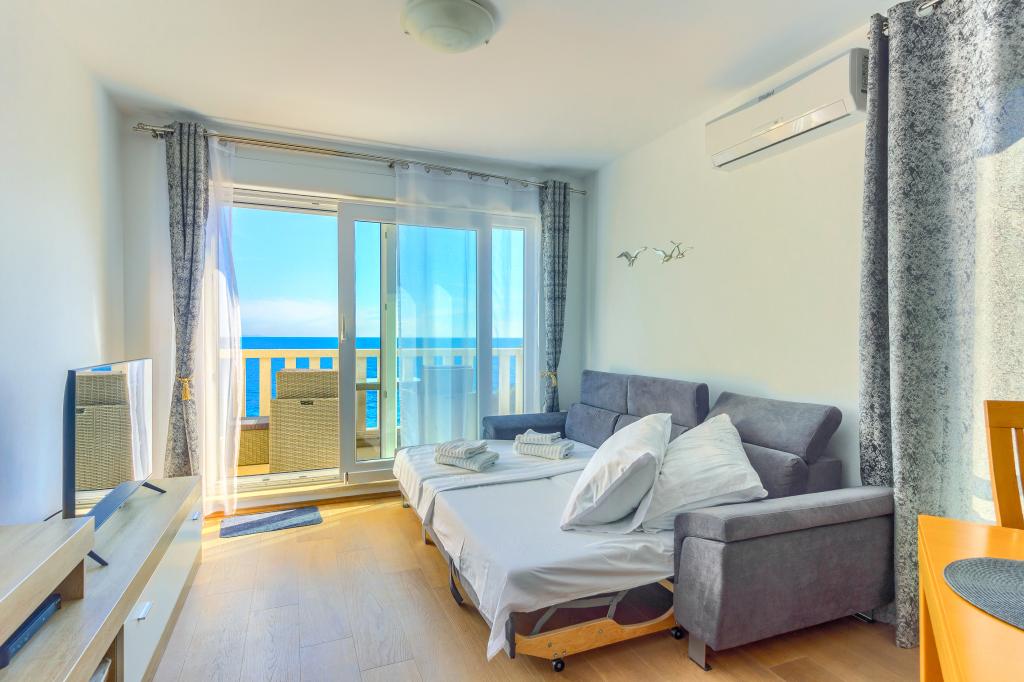 Nieuw gebouwde en modern ingerichte appartementen bevinden zich direct naast het strand in het rustige stadje Ivan Dolac. Appartementen Unit 1 en Unit 6 zijn voor 4 personen, ze bestaan uit een slaapkamer met een tweepersoonsbed 160 x 200, een badkamer met douche, een keuken en een eetkamer, en een woonkamer met SAT-TV en een slaapbank, en een terras met een prachtig uitzicht op het strand, de zee en de eilanden. Appartementen P1 en P2 zijn voor 8 personen, ze bestaan uit 3 slaapkamers en een slaapbank in de woonkamer, 2 badkamers, een volledig uitgeruste keuken met vaatwasser, een eetkamer en een eettafel op het grote terras ervoor met uitzicht van de zee. Appartement P2 heeft een grotere oppervlakte dan P1, omdat het een volledige slaapkamer en badkamer op de verdieping eronder heeft. Een restaurant en cafés liggen op slechts 20 meter afstand en een winkel op 100 meter van het appartement. Hoewel het huis in het centrum van dit kleine toeristische stadje ligt, biedt het volledige rust en privacy omdat de gasten voornamelijk gezinnen met kleine kinderen zijn die genieten van de prachtige stranden en de kristalheldere zee.