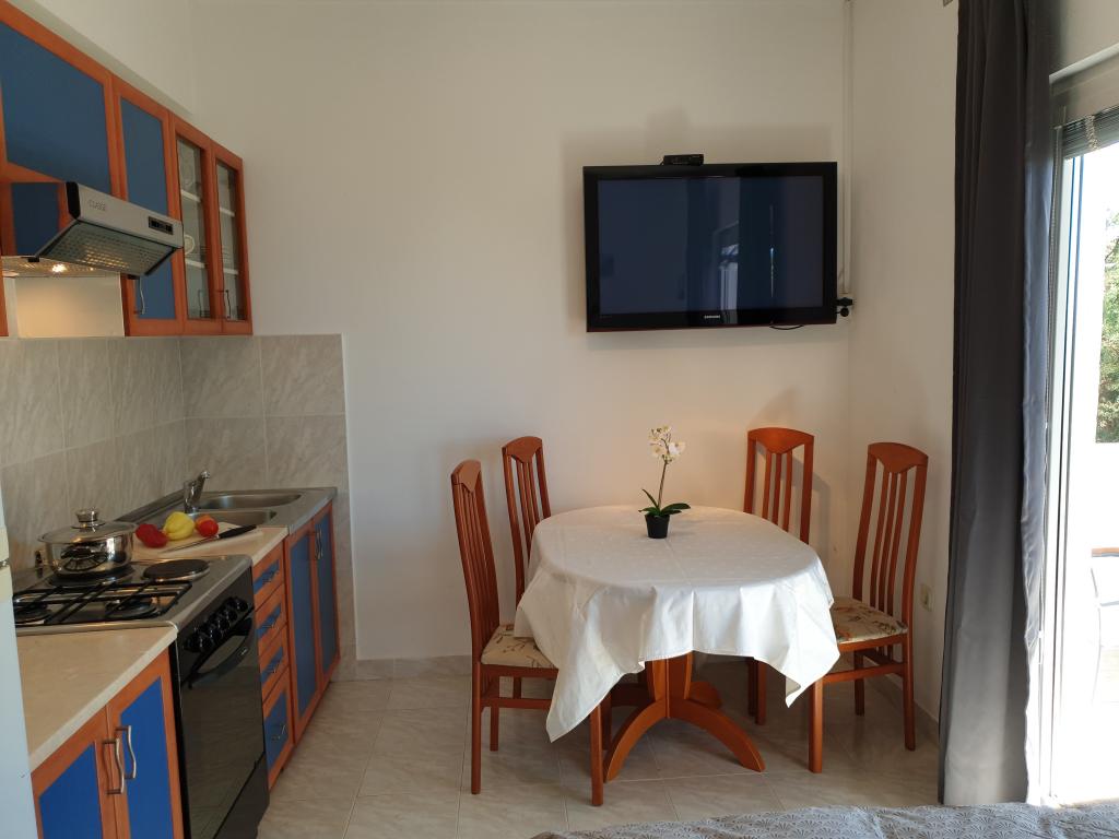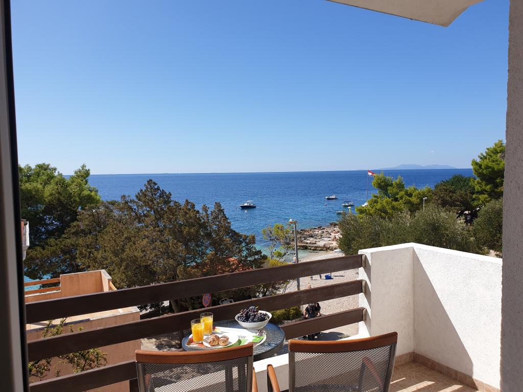 Appartementen met een prachtig uitzicht op zee bevinden zich direct naast het strand in Ivan Dolac. Het is ook het centrum van een rustig toeristisch stadje dat ideaal is voor gezinnen met kinderen vanwege de nabijheid van het strand, op slechts 10 meter van het huis, bakker 40 m, winkel 100 m, café en restaurant 20 m. In de kelder van het huis is er onze souvenirwinkel en wijnwinkel. - Klein appartement A3 bestaat uit een keuken met een eettafel en een slaapbank, een slaapkamer met een tweepersoonsbed, een badkamer met douche, een inkomhal en een terras. Vanuit bijna het gehele appartement heeft u een prachtig uitzicht op zee en het strand. Het appartement is gelegen op de 1e verdieping van de woning, evenals het appartement. A4. - Groot appartement A4 bestaat uit een keuken met een eettafel en een slaapbank, twee slaapkamers met een tweepersoonsbed, een badkamer met douche, een hal en een terras. Vanuit de keuken, een slaapkamer en het terras is er uitzicht op zee.