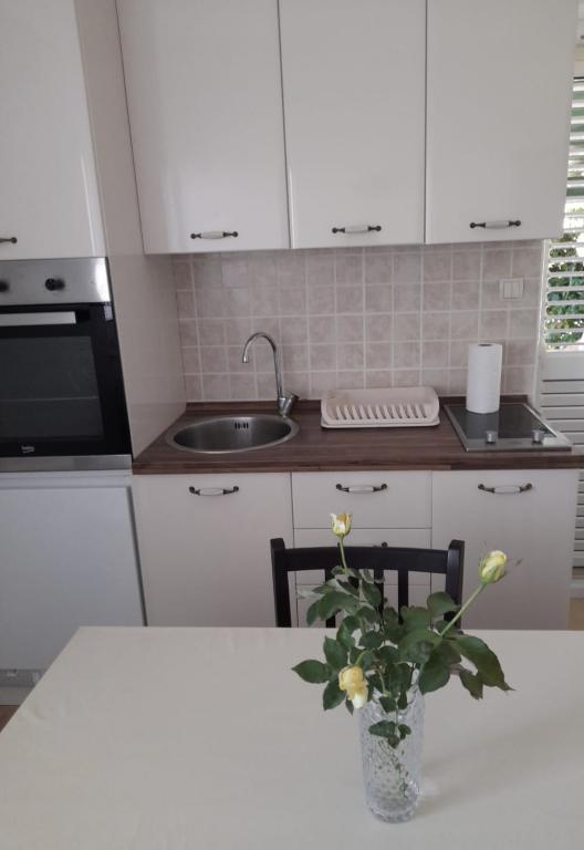 Onze locatie is Veli Iž, een prachtig eiland vlakbij Zadar. Als u op zoek bent naar een vakantie ver weg van de drukte van de stad, drukke stranden, lawaai en stress, dan is dit de ideale bestemming. 's Ochtends, wanneer u wakker wordt, ruikt u de geur en frisheid van de schone Adriatische Zee in de lucht, die op 5 minuten loopafstand ligt. De plek is klein, maar bijzonder. Het is versierd met vele oude straatjes, natuur, de zee, een kerk met luidende klokken, zodat u niet op de tijd hoeft te letten, 2 winkels met levensmiddelen en benodigdheden, een paar cafés om af te koelen met diverse drankjes en restaurants waar u uzelf kunt verwennen met specialiteiten van het eiland en andere heerlijke gerechten. De appartementen zijn comfortabel en geschikt voor zowel gezinnen met kinderen als stellen. Ze beschikken over alles wat u nodig heeft voor een kwaliteitsvakantie. Alles is binnen handbereik. Het centrum ligt op 7 minuten loopafstand. U kunt gebruikmaken van de grill die bij de accommodatie hoort voor het bereiden van vis en vlees. Er is parkeergelegenheid voor de deur. Elk appartement heeft een terras om te ontspannen. Kom naar Veli Iž en geniet van de magie van het eiland. Wij staan voor u klaar voor al uw vragen.