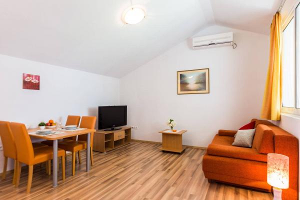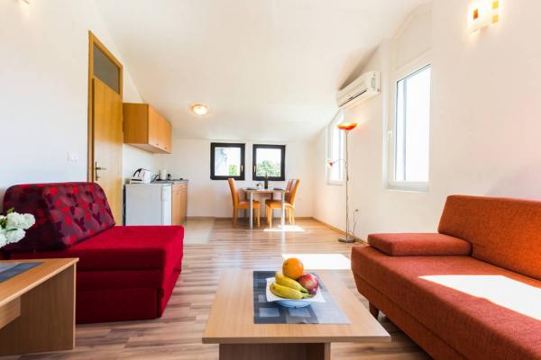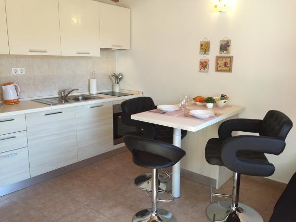 Vriendelijke gastheren! Super nette appartement! Het appartement was schoon, netjes en elke cent waard echt. De gastheren ook erg vriendelijk! We voelden ons echt welkom. Het strand ligt op slechts 5 minuten lopen. Op het eiland en had geen behoefte aan een auto te wijten aan het feit dat de catamaran is ook 3-4 minuten lopen. Als u met de auto komt, heeft een parkeerplaats direct voor appartement. We hadden een rust!